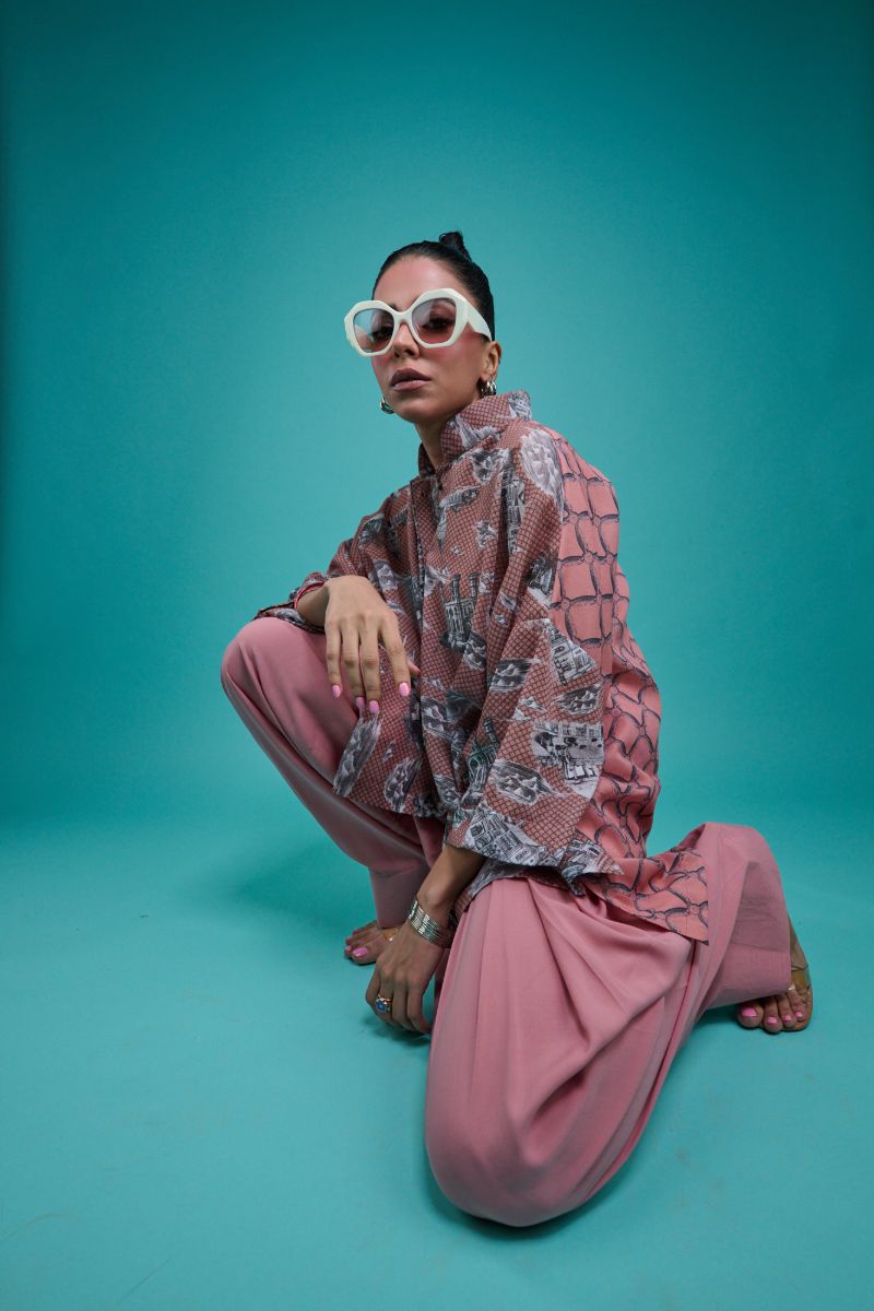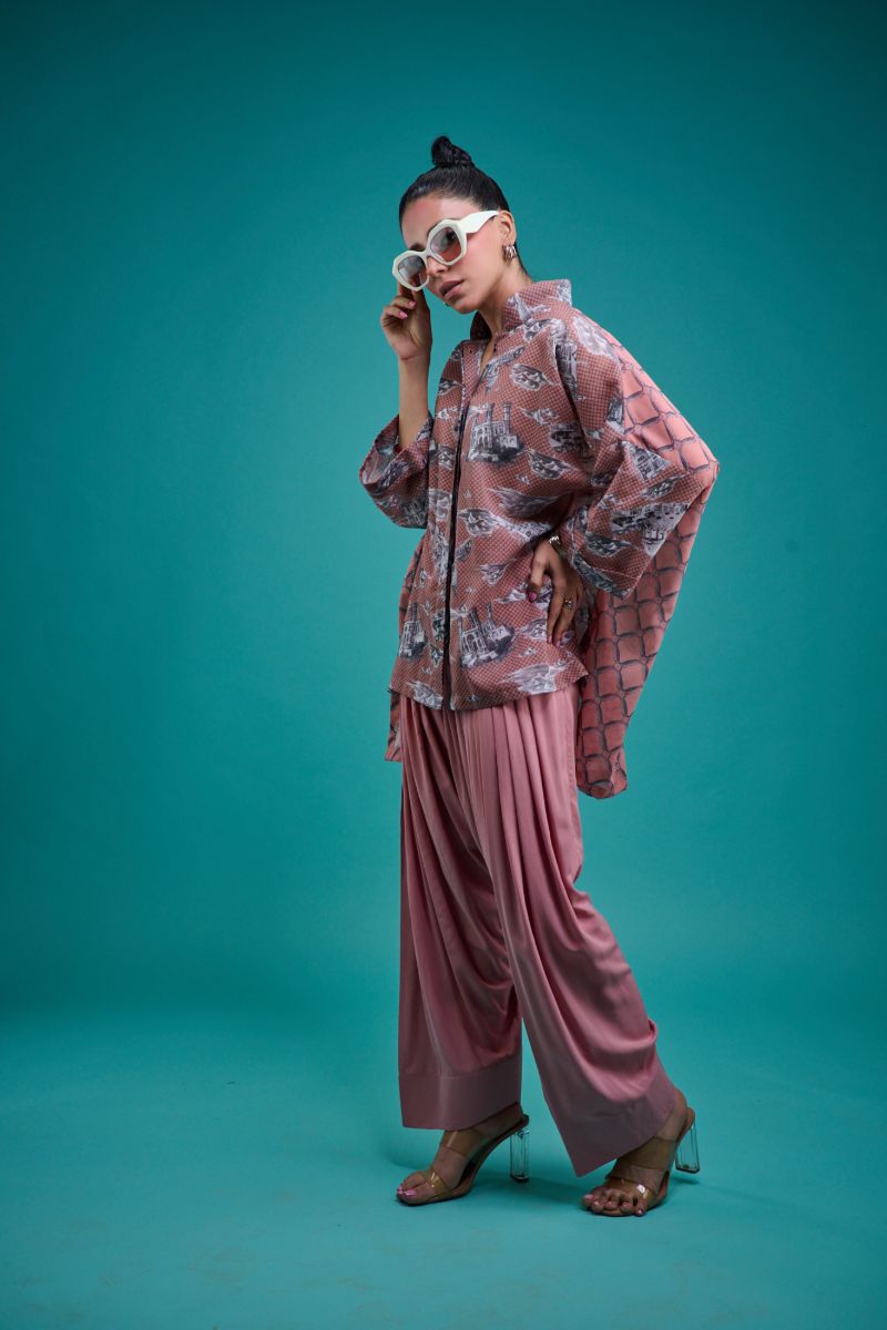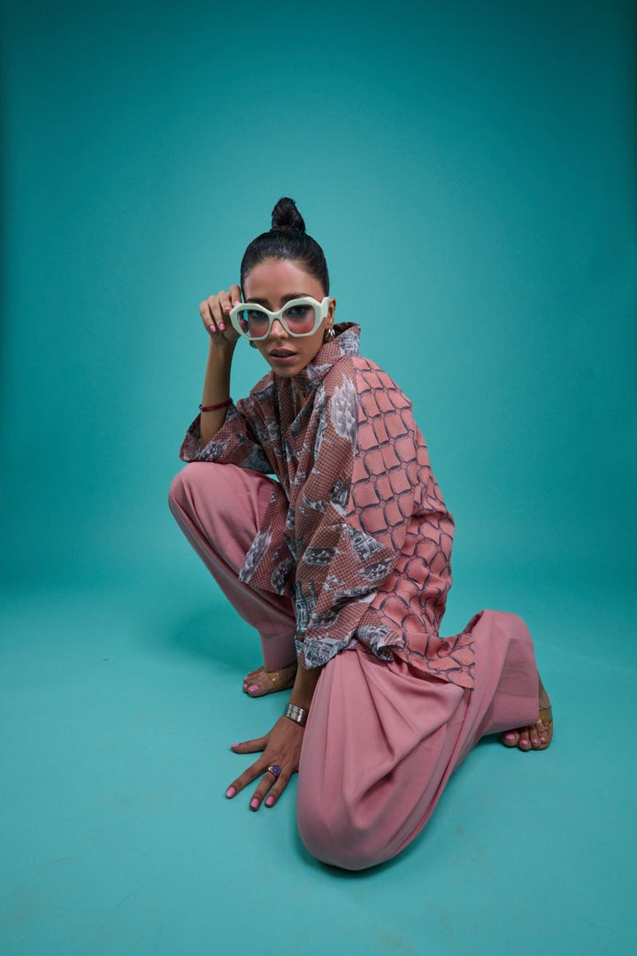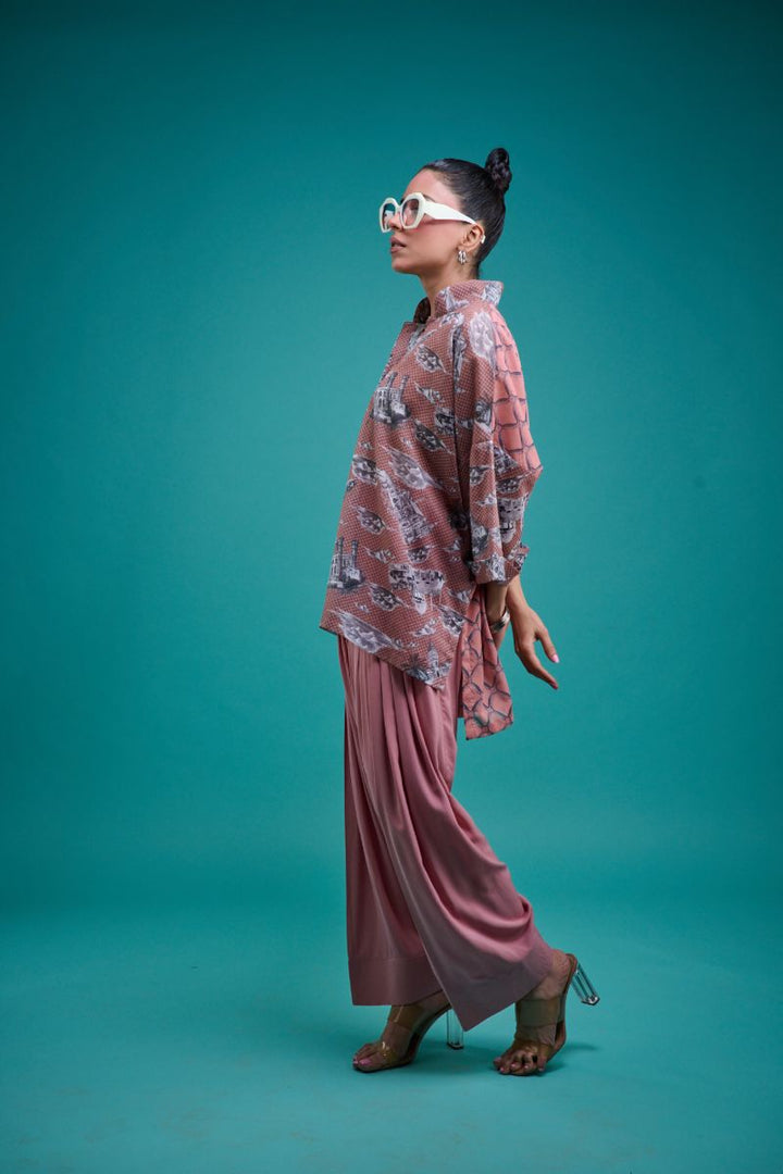 Wear your Heart in our all new Toile de Pakistan Collection! Our Toile de Pakistan Print are an ode toile heritage buildings in the landscape of the country. This co-ord set features a loose fit top with front buttons and a band collar, paired with our newest shalwar, perfectly pleated with a wide hem for an edgy look.