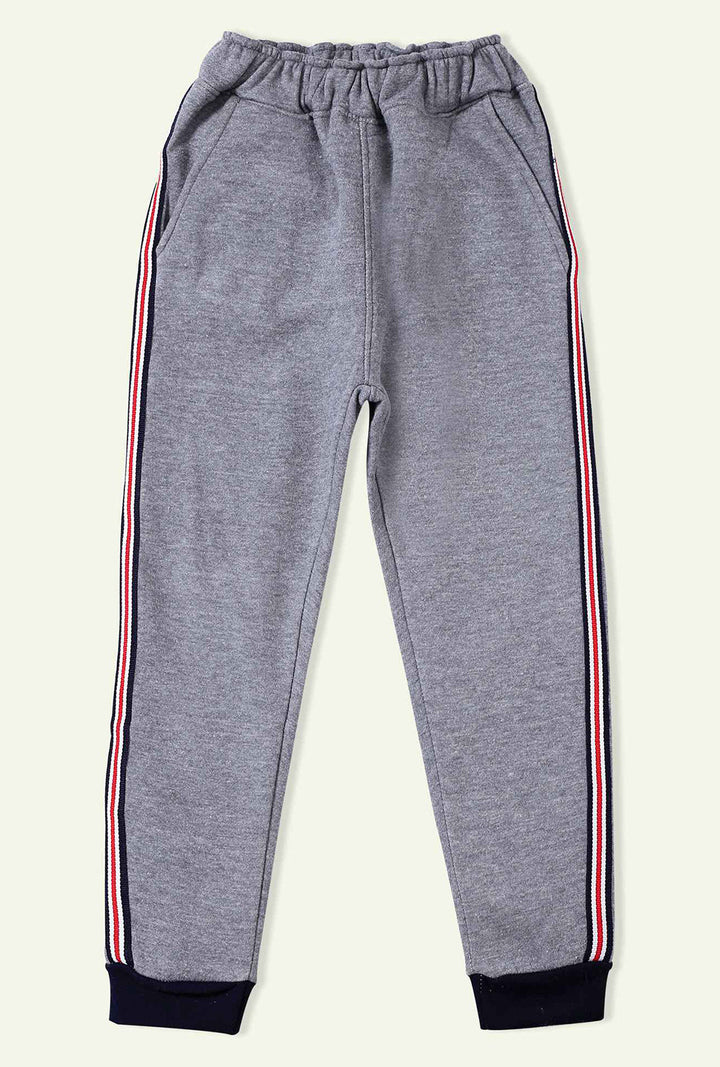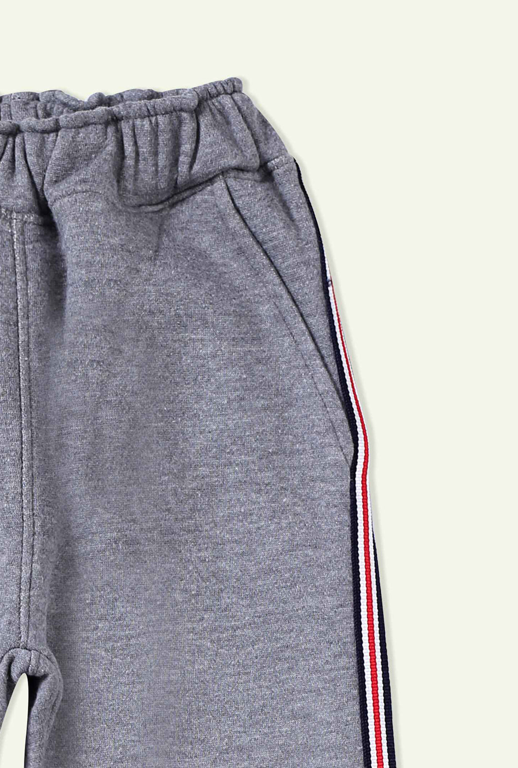 Here comes the little grey goose!! We love this fun multi colored snuggly fleece sweatsuit from our Lounge-wear collection. Imagined in the softest possible cotton fleece fabric, the stye is a 2 set style with a cut and sew style jumper in grey, navy and red, pull-up pants with an elasticated waist and hem for maximum comfort with a multi color tape running down the sides. Your little sleepy head is sure to love this fun and cosy outfit!