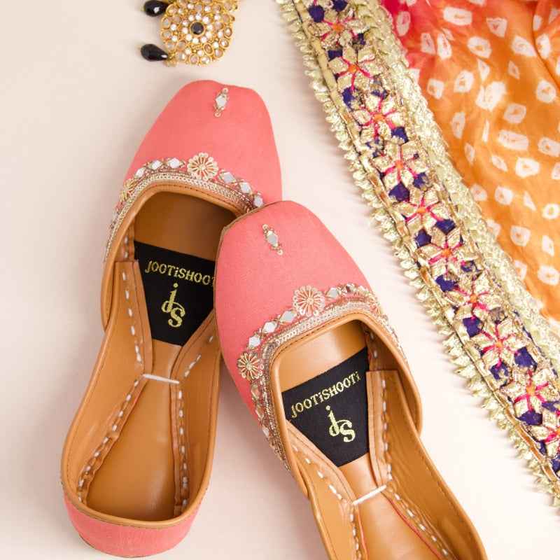 JootiShooti - Shamsa Mirror Rose Coral Khussa For Women