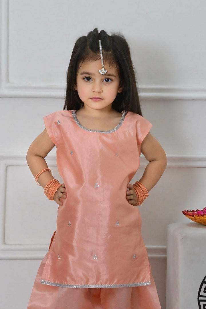 Mom4little - Peach Katan Farshi shalwar set - 2 Piece