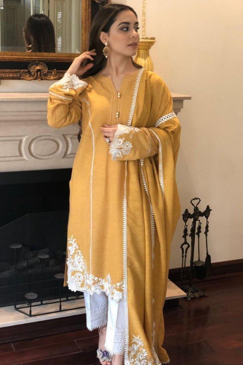 The fabric she uses is (Jamawar, Pure Silk, Cotton, Soft Net, Tissue). Maheen Taseer with the idea and knowledge of designing for a real woman that is effortless, sophisticated, and finds strength in her femininity. From then she is setting the bar with her innovation, contemporary yet traditional designs.