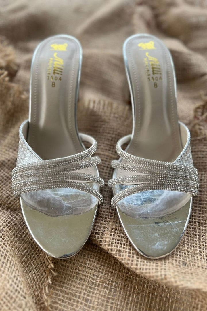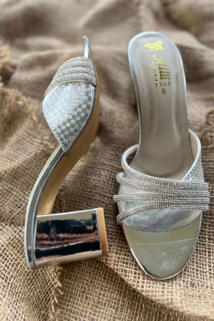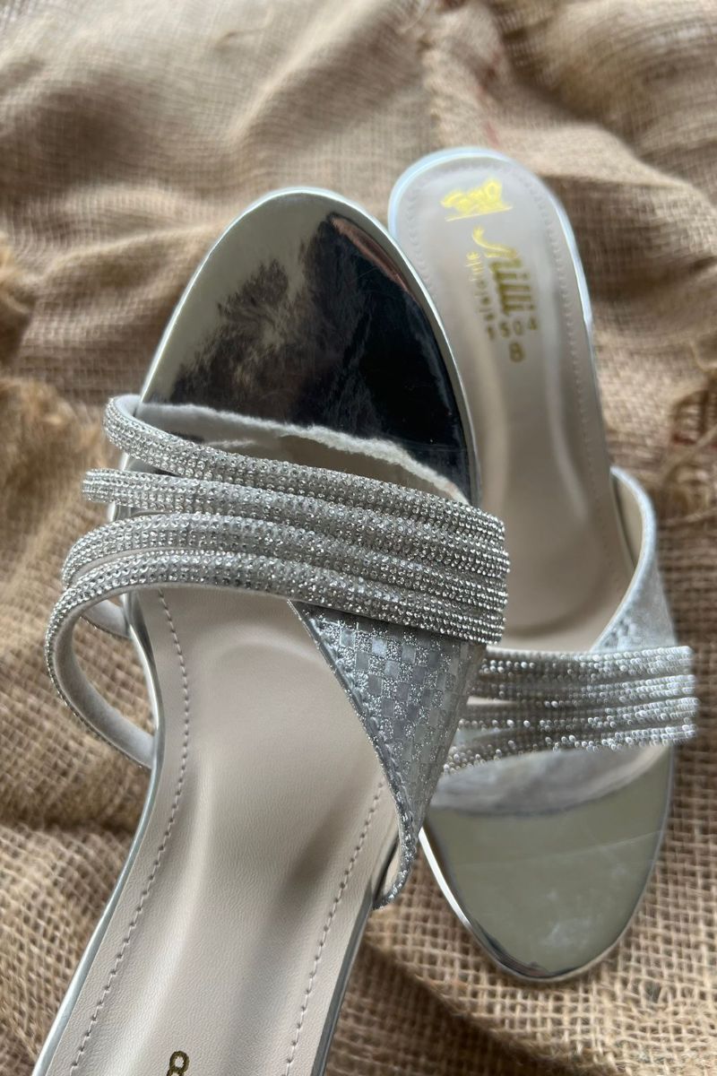 Add some sparkle to your step with these Formal Heels! Featuring diamante straps and textured silver rexine, these heels are perfect for any occasion. The block middi heels provide comfort while the black insole toe adds a touch of elegance. So go ahead, elevate your style with these quirky heels!