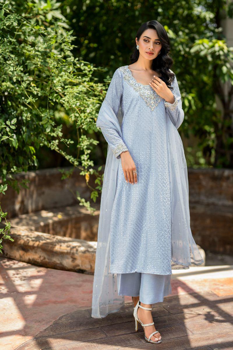hina khawaja in Natasha Kamal - Ellie - grey sequins - Net lined with crepe de chin - 3 Piece