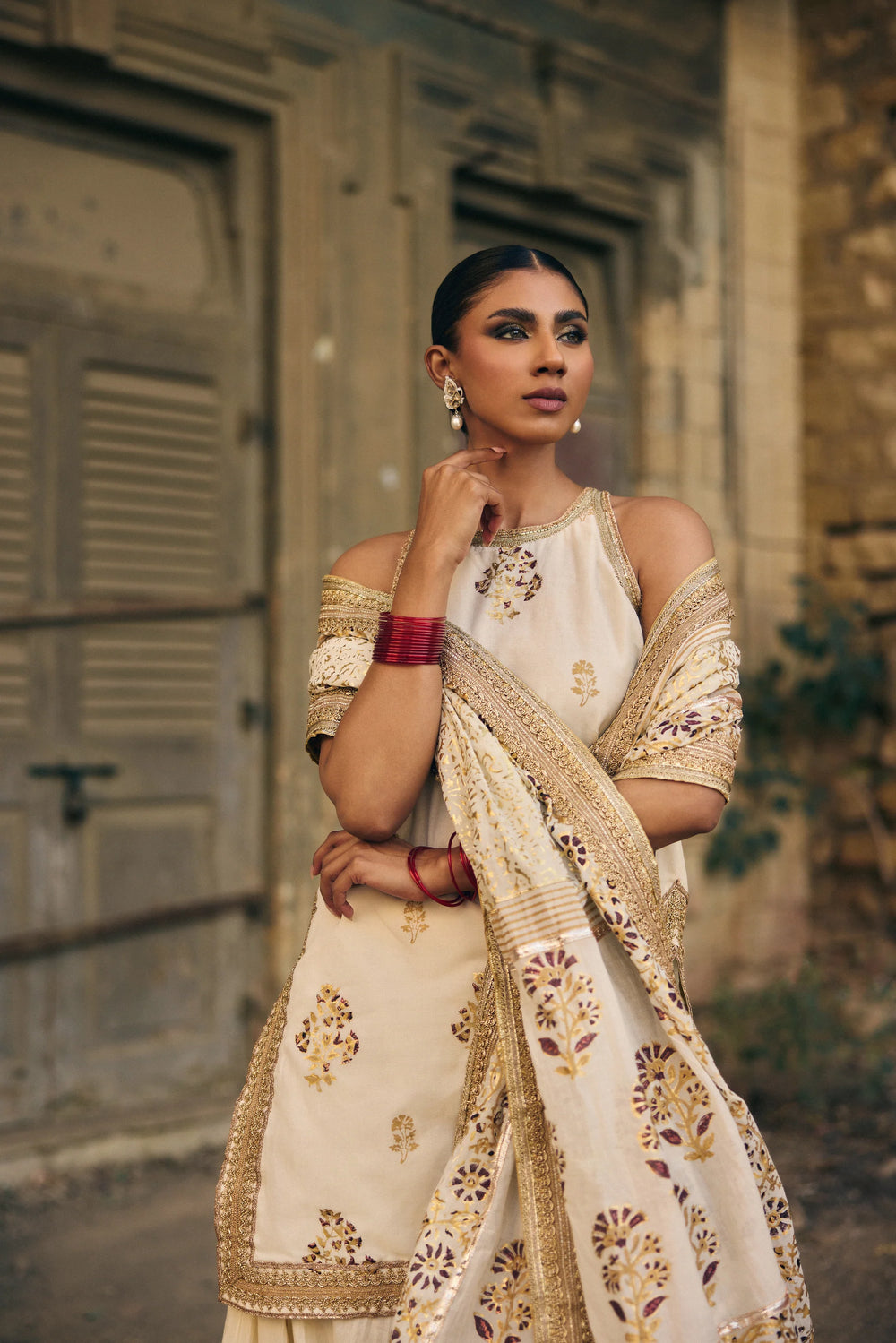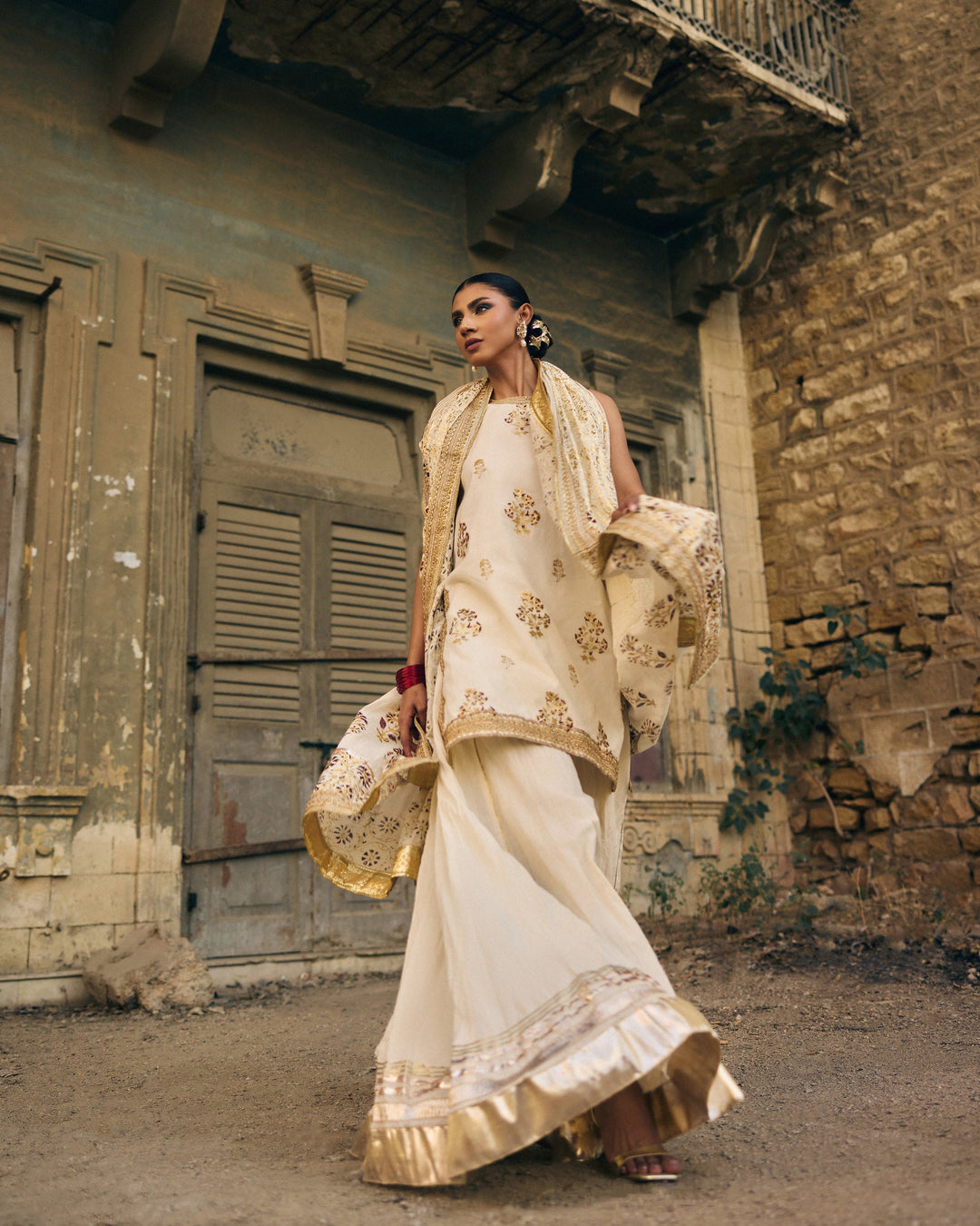 Pinktree - Vintage garland - Gharara - Gold & Red - Cotton - 3 Piece