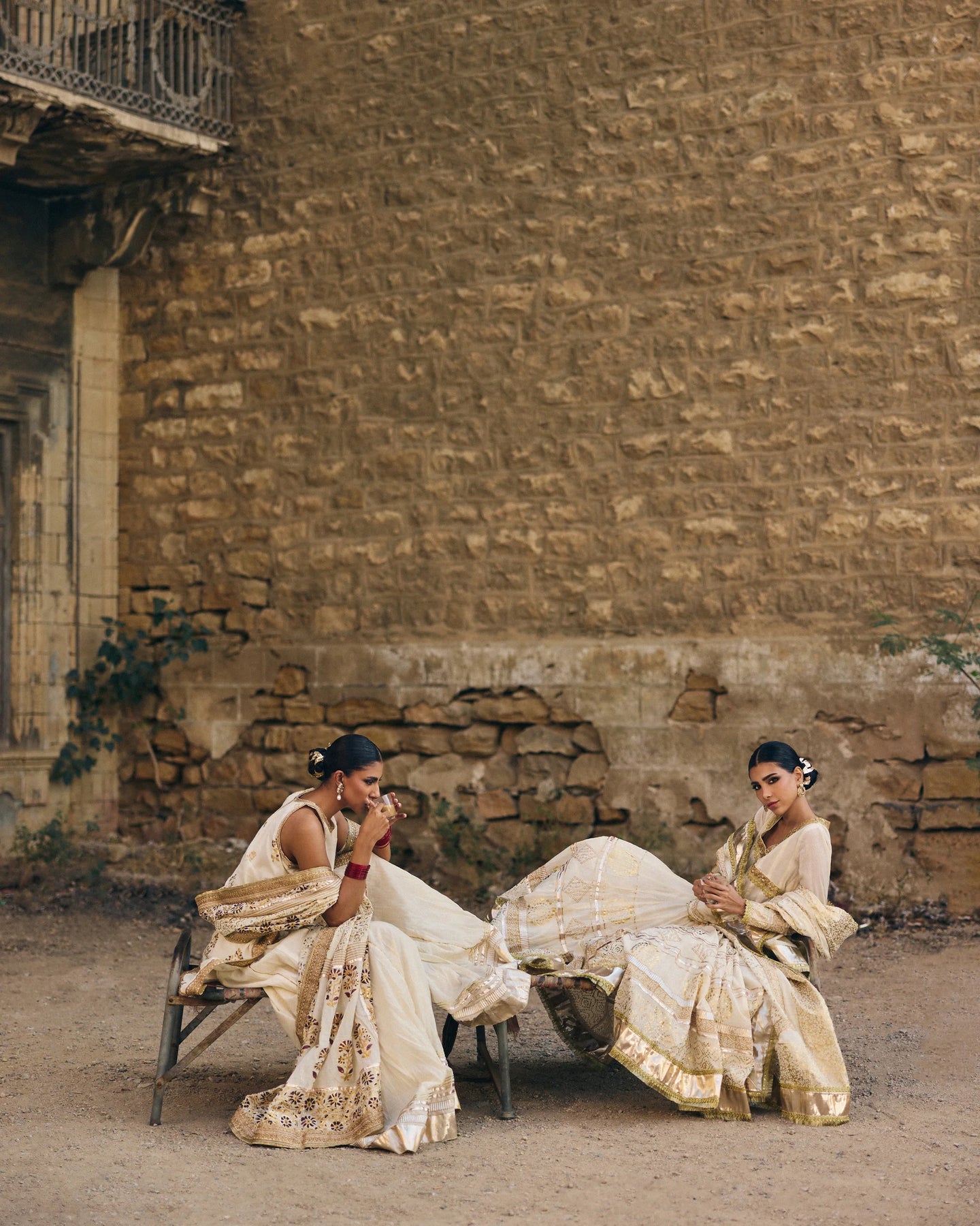 Nath is a striking three-piece Angarkha ensemble crafted from pure hand-woven muslin, designed to offer beautiful volume and a naturally graceful drape. The traditional Angarkha cut gives the outfit a flowing, layered silhouette that moves effortlessly, adding both presence and poise. The ensemble features hand-embellished kota details that bring a soft sparkle and refined texture, enhancing the richness of the overall look. Foil printing and subtle gold accents add depth and elegance, making the outfit glow with a quiet, regal charm. Nath is luxurious yet timeless, perfect for nikah ceremonies, wedding festivities, and any occasion where you want to step into a statement of culture, beauty, and immaculate craftsmanship.