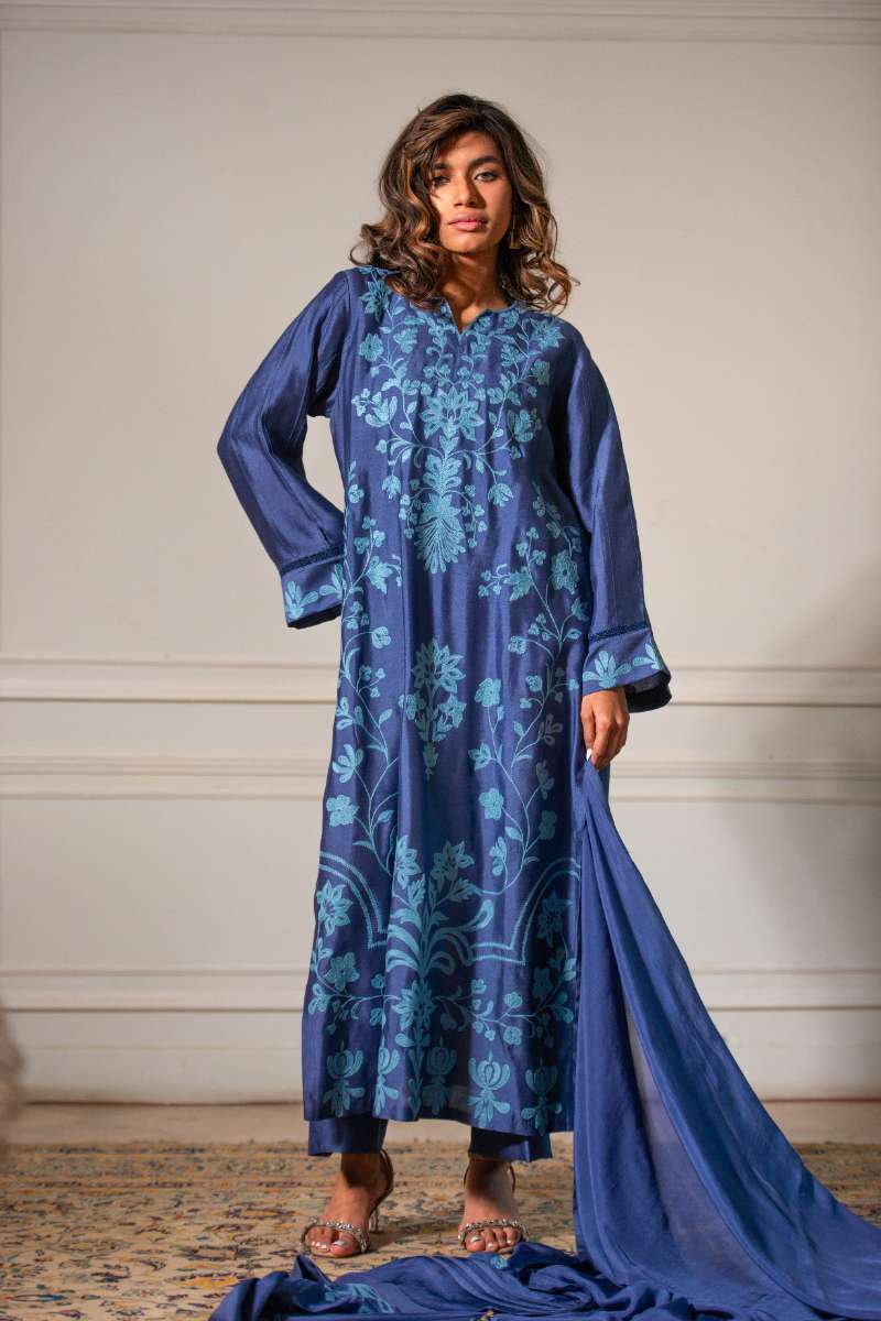 Yasmin Zaman - Butter Sheesha mat finish Suit For Women - Purssian blue - 3 Piece