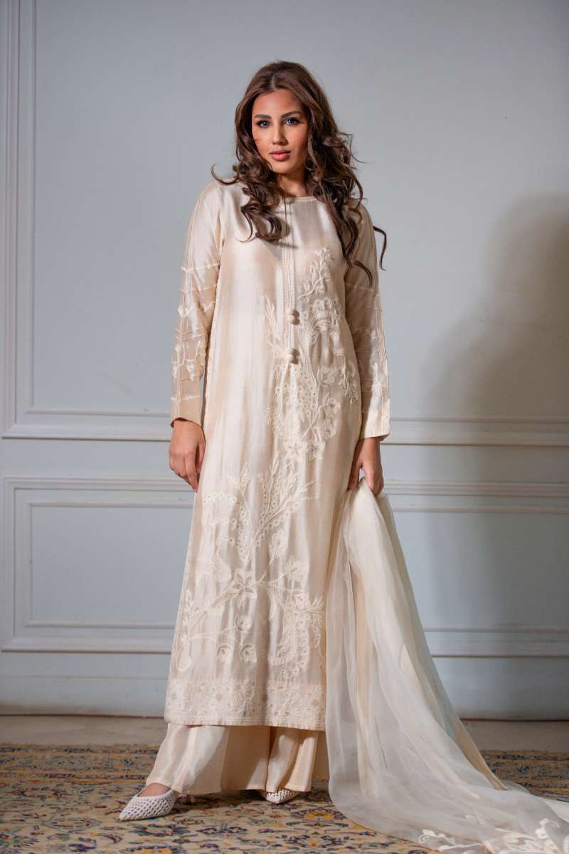Yasmin Zaman - Butter Sheesha mat finish Suit For Women - Ivory - 3 Piece