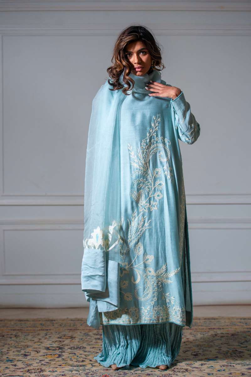 Yasmin Zaman - Butter Sheesha mat finish Suit For Women - Ice Blue - 3 Piece