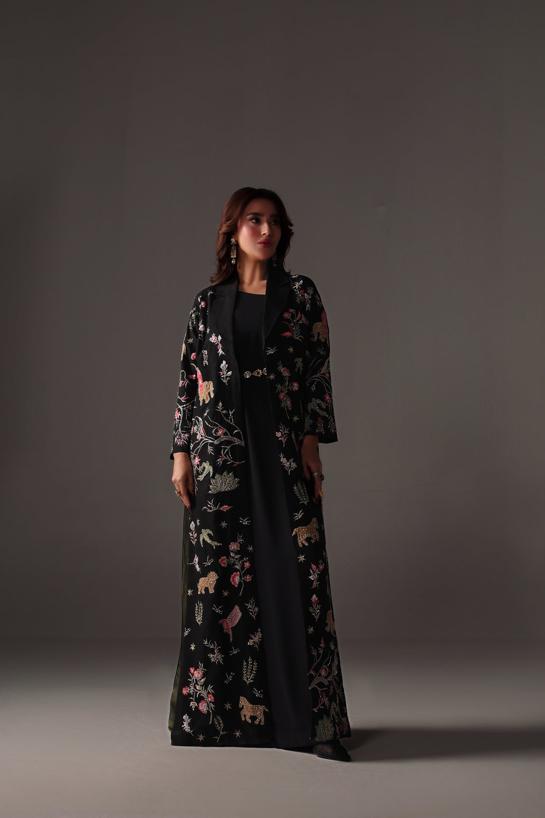 Reema Ahsan - Nera Rawsilk Jacket Dress For Women - Black - 2 Piece