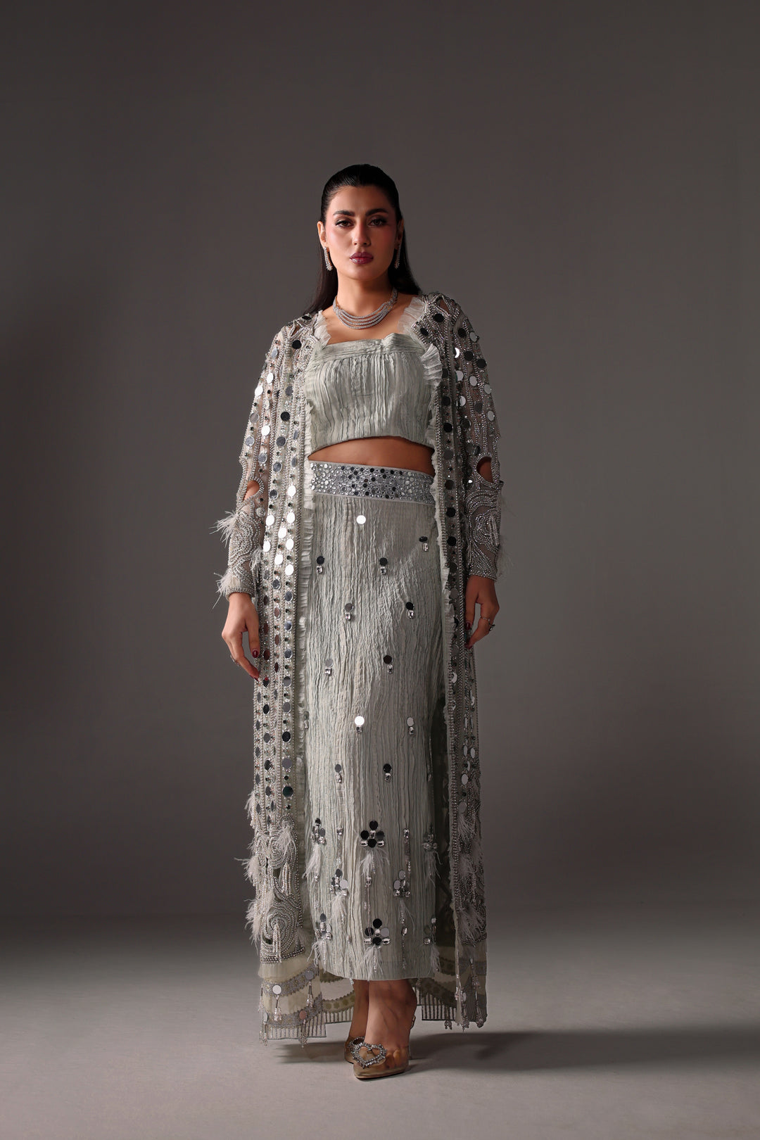 Reema Ahsan - Aveen Net & Crushed Silk Jacket Dress For Women Green - 3 Piece