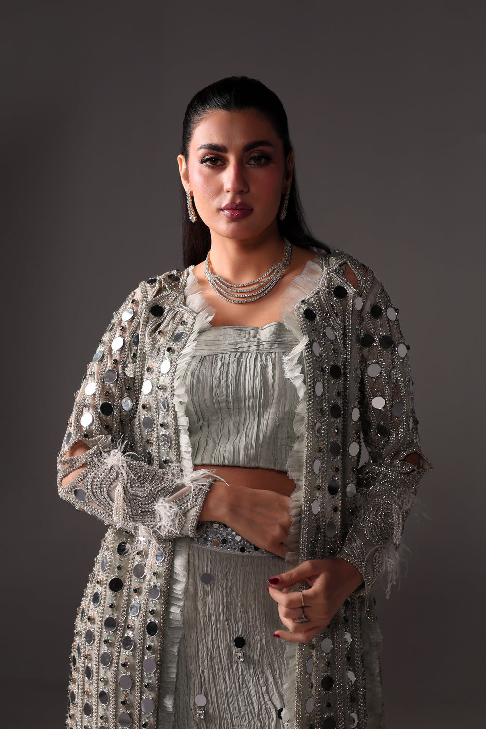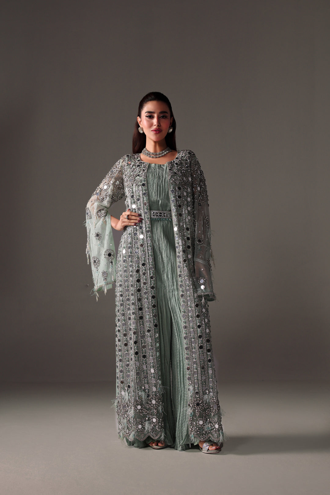 Reema Ahsan - Monisa Net & Crushed Silk Jump Suit For Women - Light Green - 2 Piece