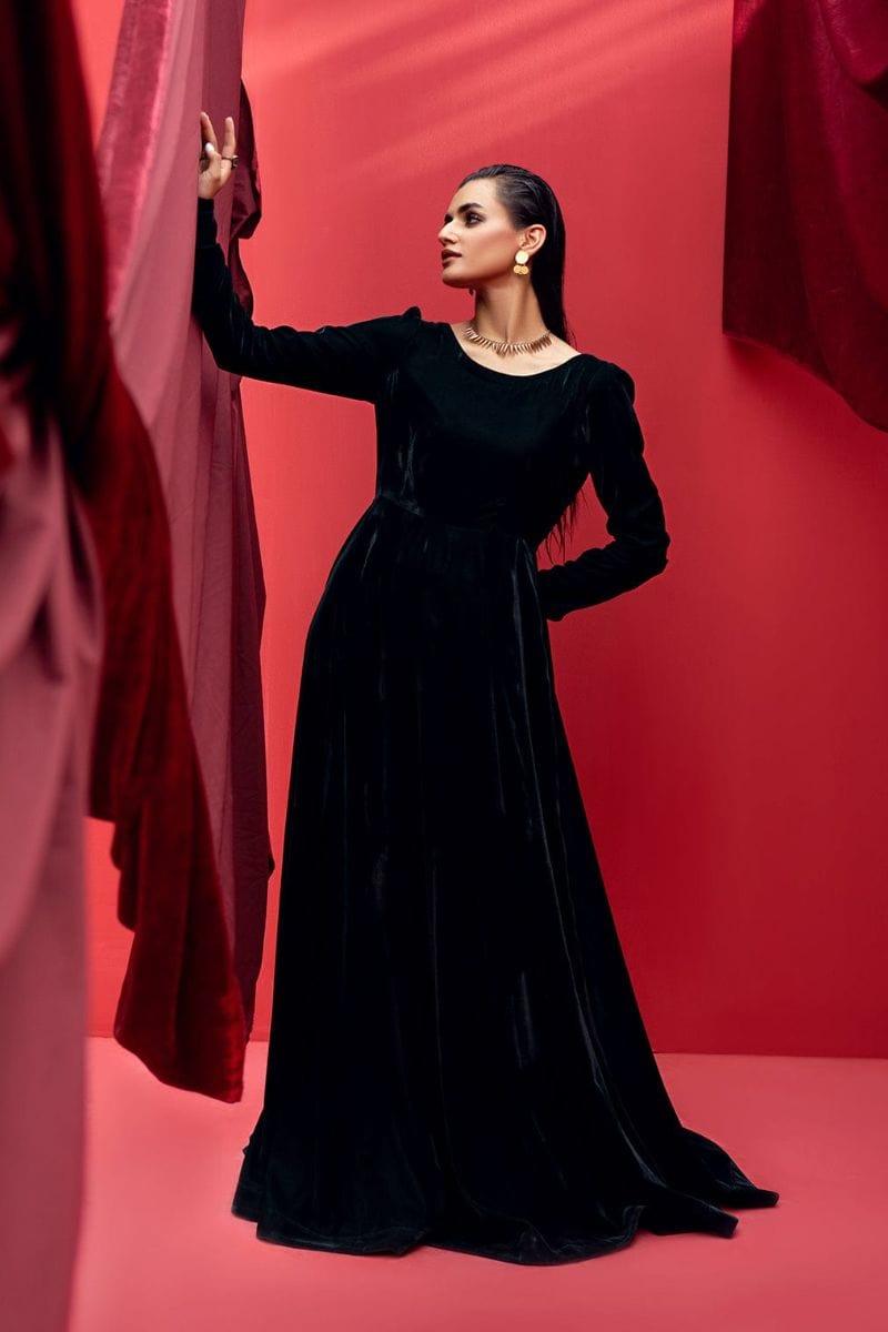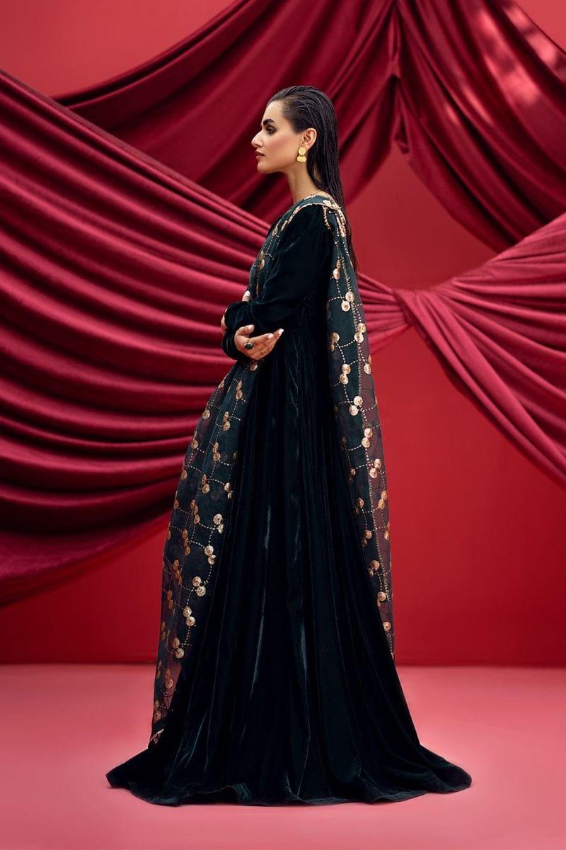 The "Eliza" promises to make you the embodiment of grace and charm. Elevate your style with this timeless ensemble from Fozia Khalid's Velvet collection.