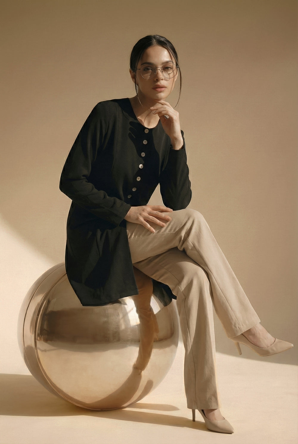 Maheen Khan - Essential Blended Chiffon Tunic Top For Women - Black - 1 Piece
