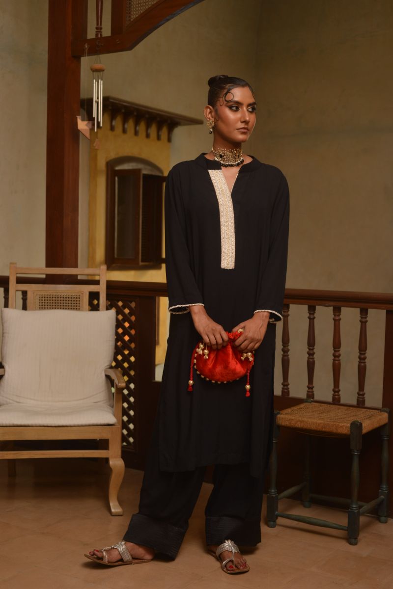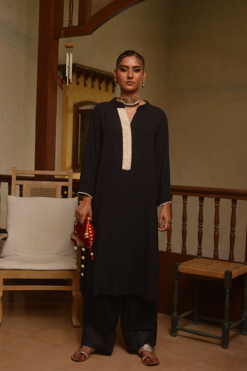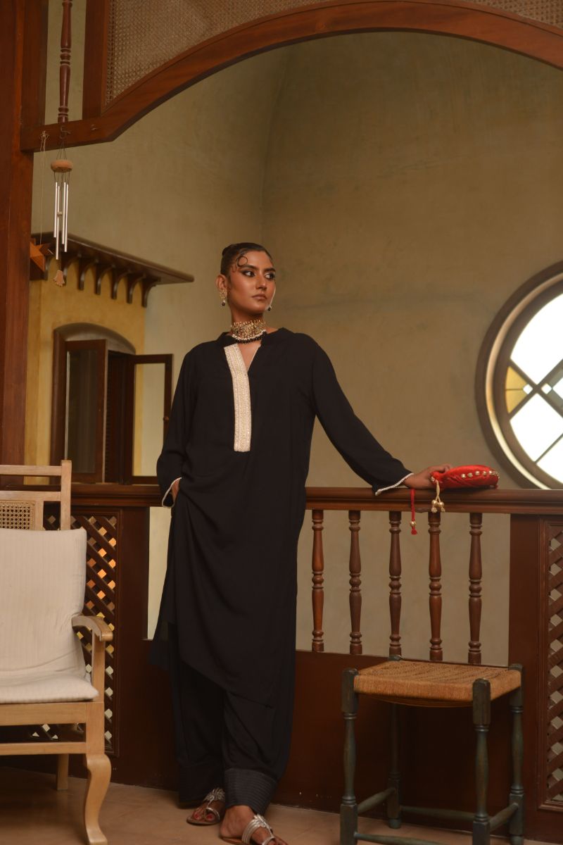 Rasa, a timeless design! Perfect for pairing up with any kurta, this lower is ever versatile. The wide hem stitch detaling elevates the trouser's look. Either match it to our classic Yara Kurta or any other from your wardrobe, and add a touch of effortless grace to your ensemble.