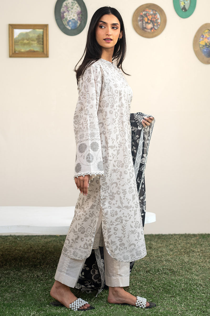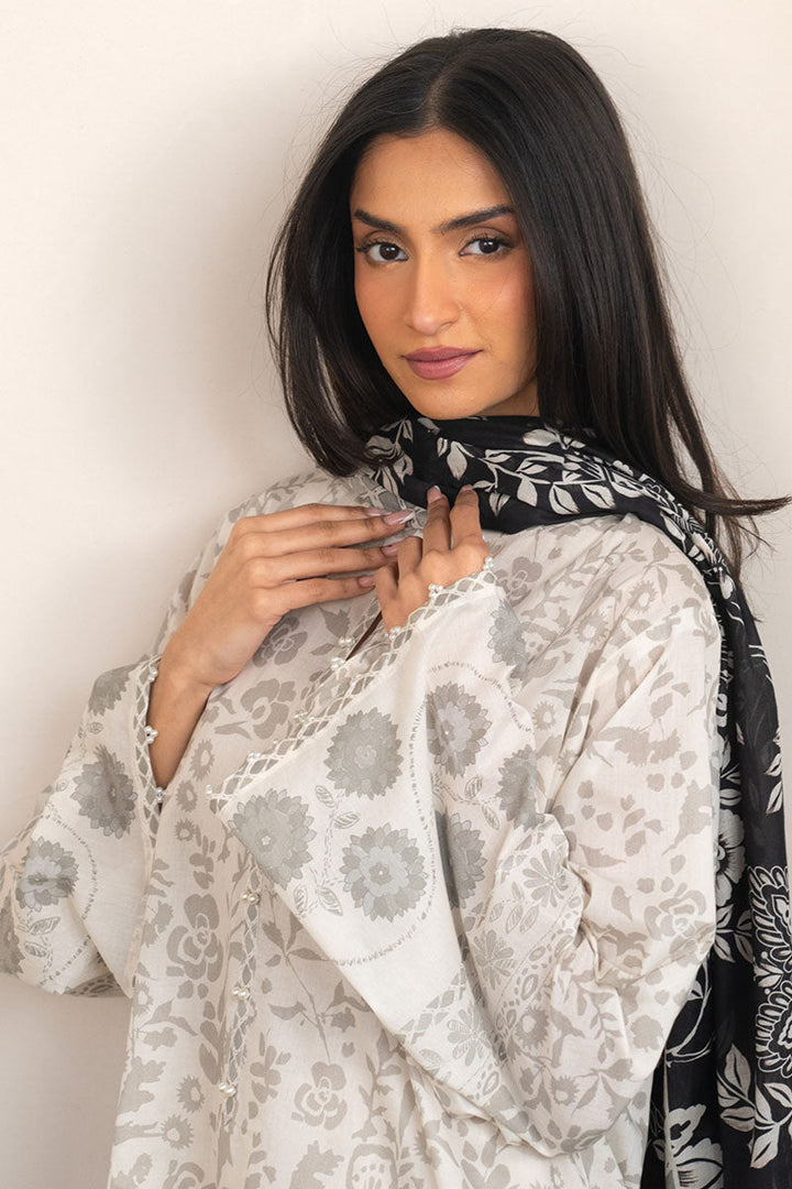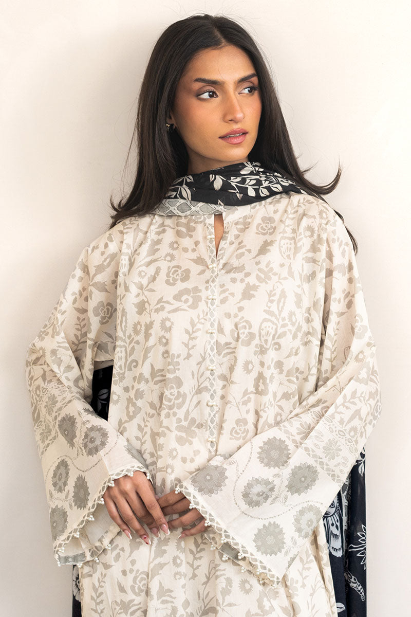 UNSTITCH 3 PC: DIGITAL PRINTED LAWN SHIRT,DYED CAMBRIC TROUSER AND LAWN DIGITAL PRINTED DUPATTA