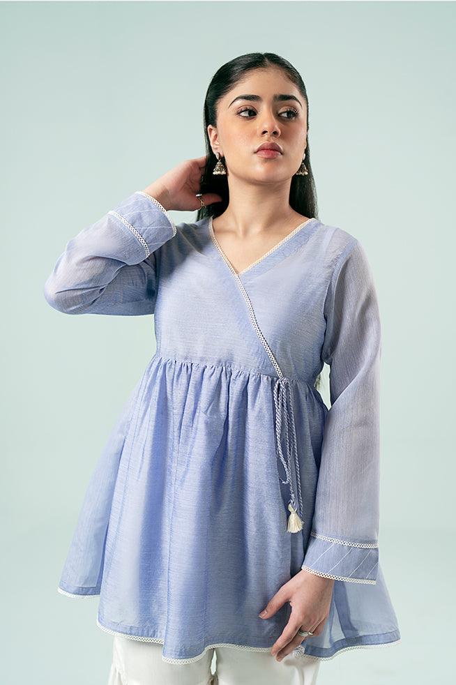 Elevate your summer wardrobe with this paper silk tunic featuring an elegant organza neckline and intricate embroidered button details on the sleeves. Delicate embroidery along the hem adds a touch of sophistication.