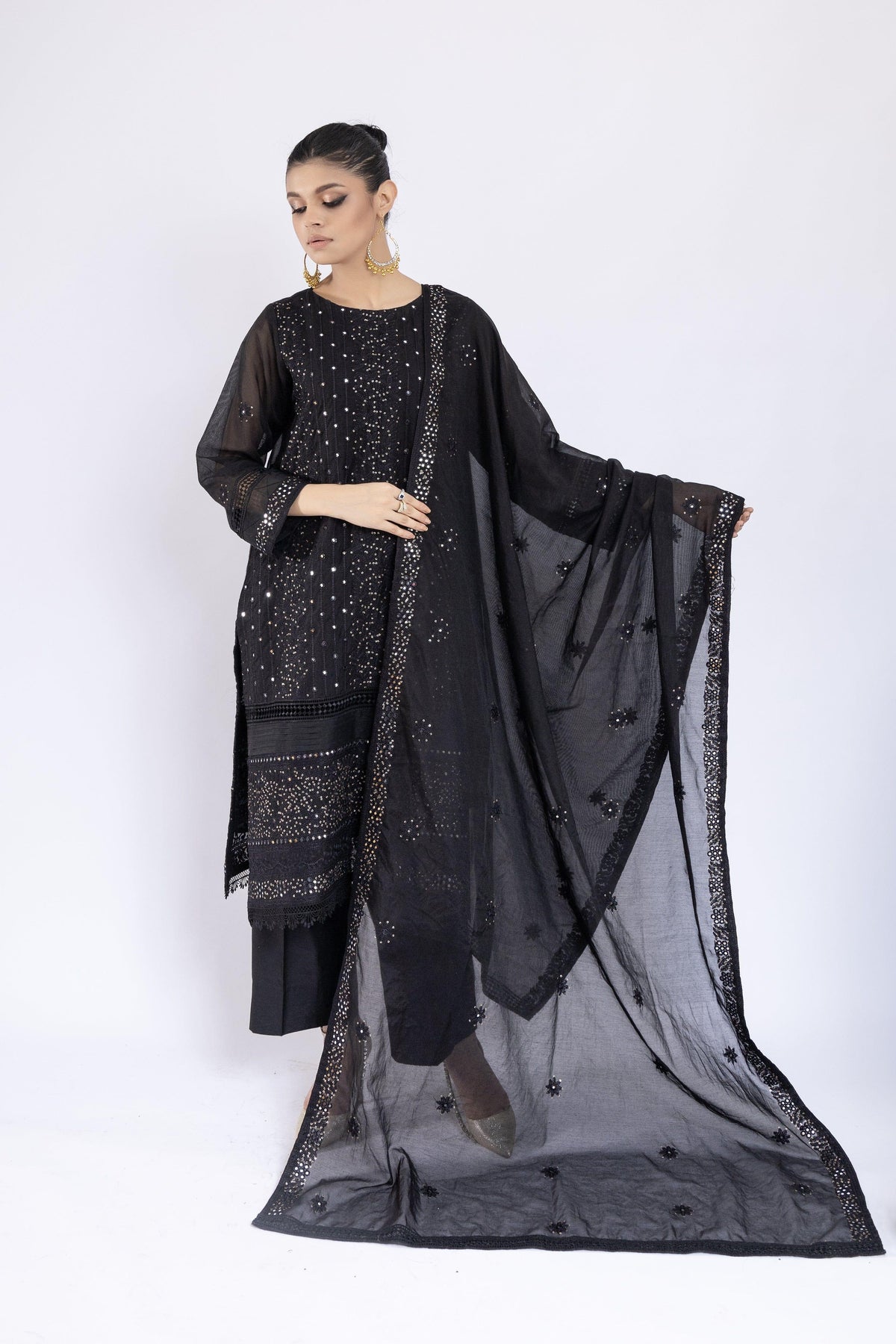 Sadia Aamir - Lailah - Black Organza Embroidered Shirt and Dupatta with Culottes - 3 Piece - Studio by TCS