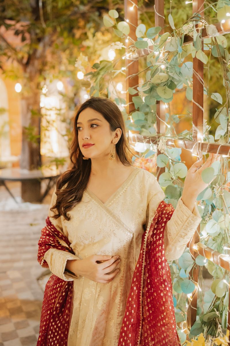 This exquisite off-white karndi fabric anarkali is a masterpiece of elegance and sophistication, perfect for a Nikkah event. The kardi fabric, known for its intricate, hand-woven patterns, adds a touch of luxury and refinement to the overall design. The anarkali's off-white hue is a classic! Paired with dupatta 2pcs stitched outfit