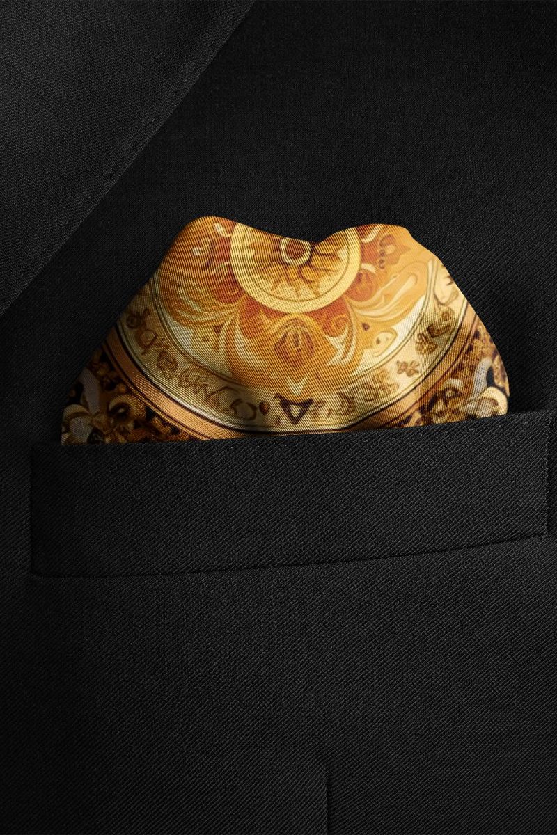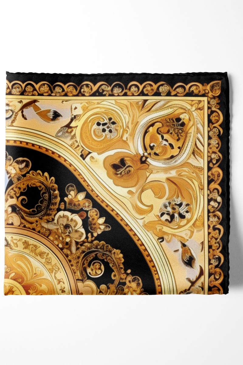 Black Wolf - AUTHENTIC BAROQUE DESIGN SILK POCKET SQUARE - Cream - SILK - 1 Piece