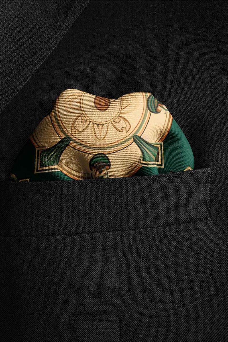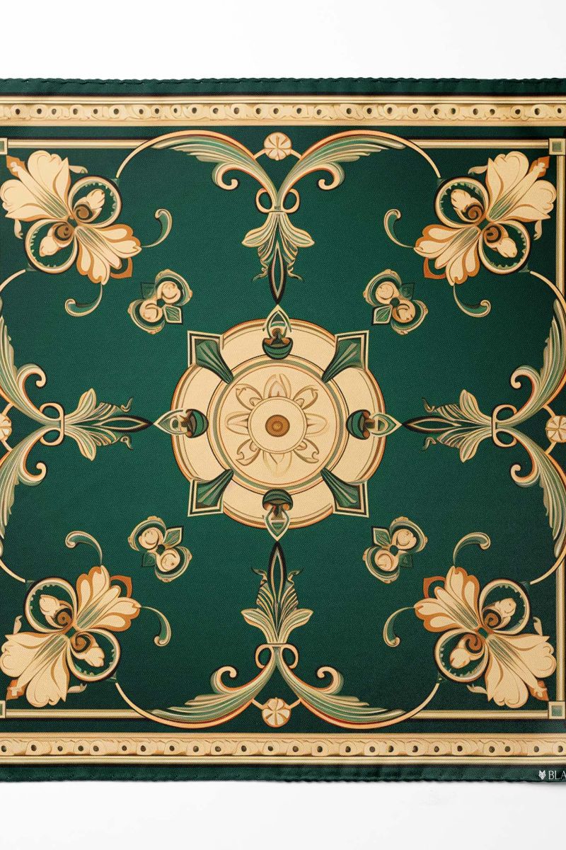 Black Wolf - VINTAGE GREEK SILK POCKET SQUARE - GREEN - SILK - 1 Piece