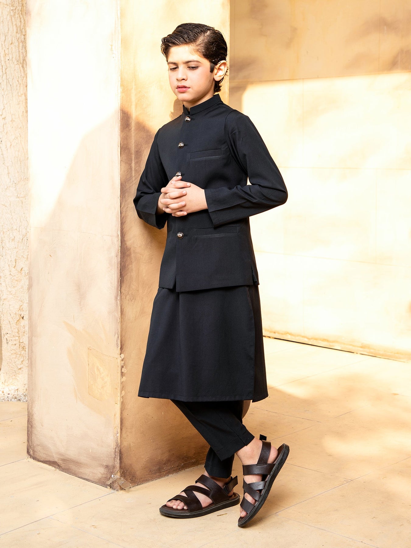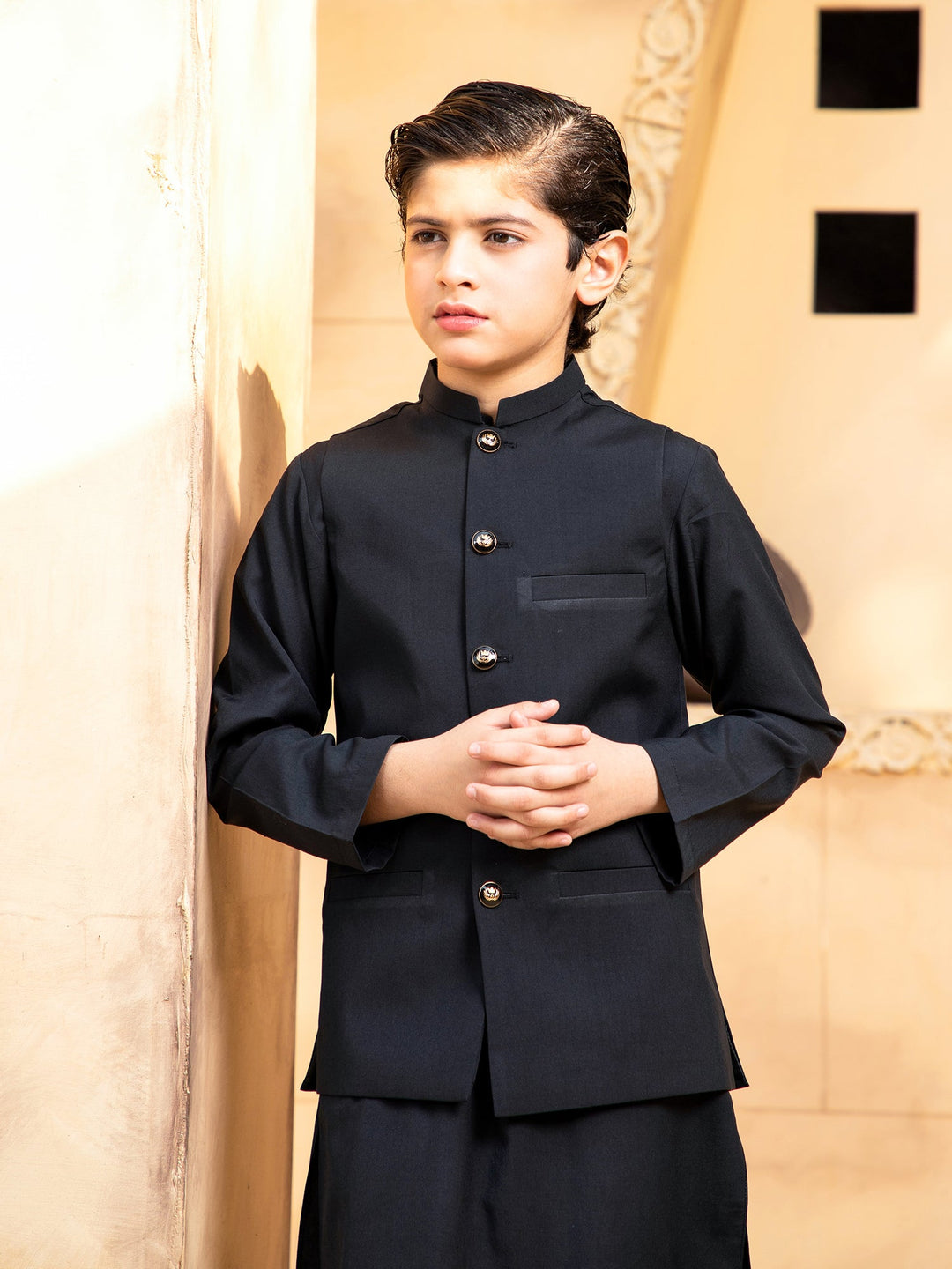 Shahjahan - Boski Black Kurta Trouser with Waistcoat - 3 Piece