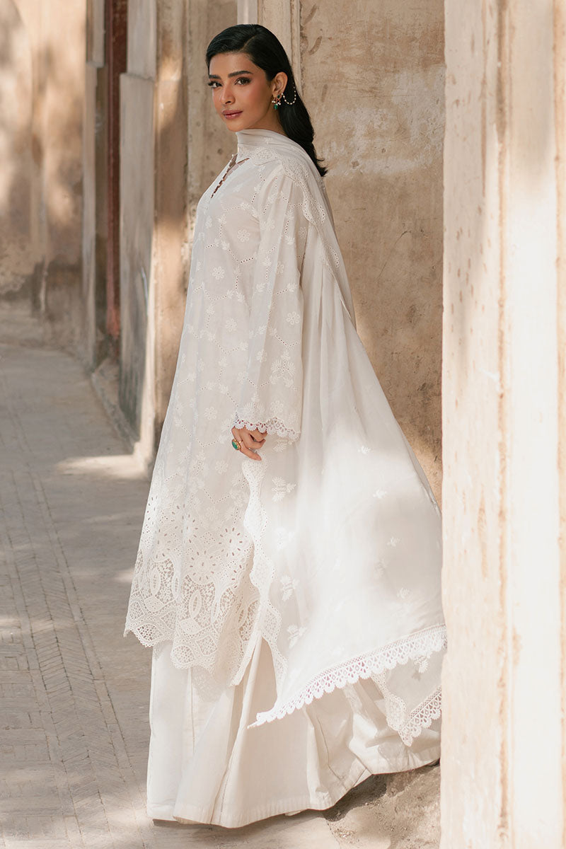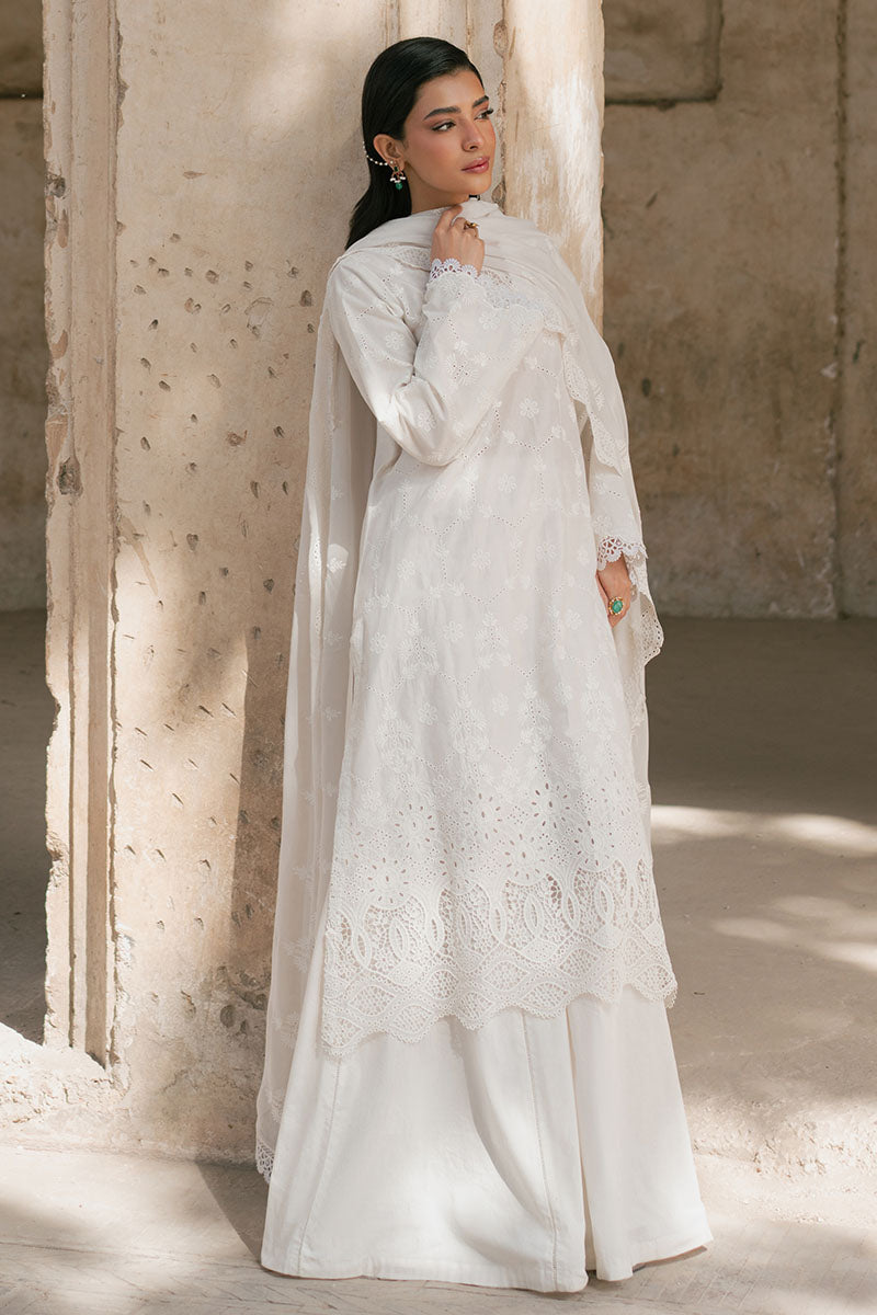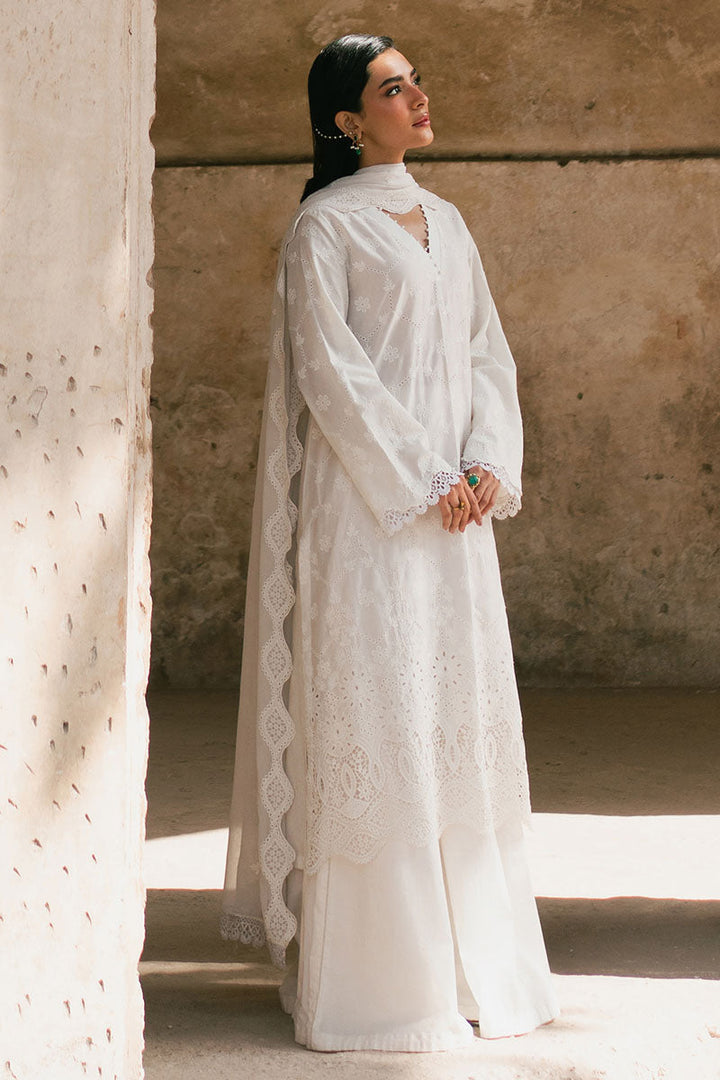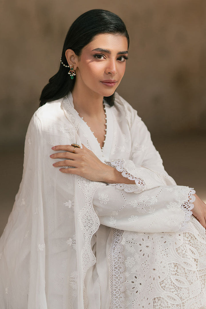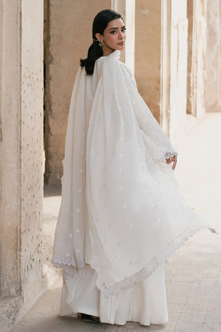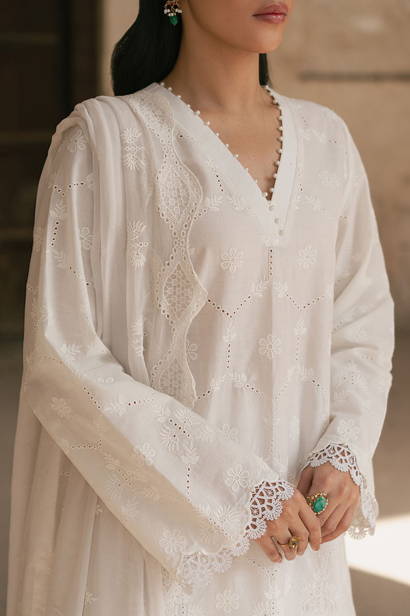 UNSTITCH 3 PC: CHIKANKARI LAWN FRONT AND SLEEVES,DYED BACK,CAMBRIC DYED TROUSER AND CHIFFON CHIKANKARI DUPATTA