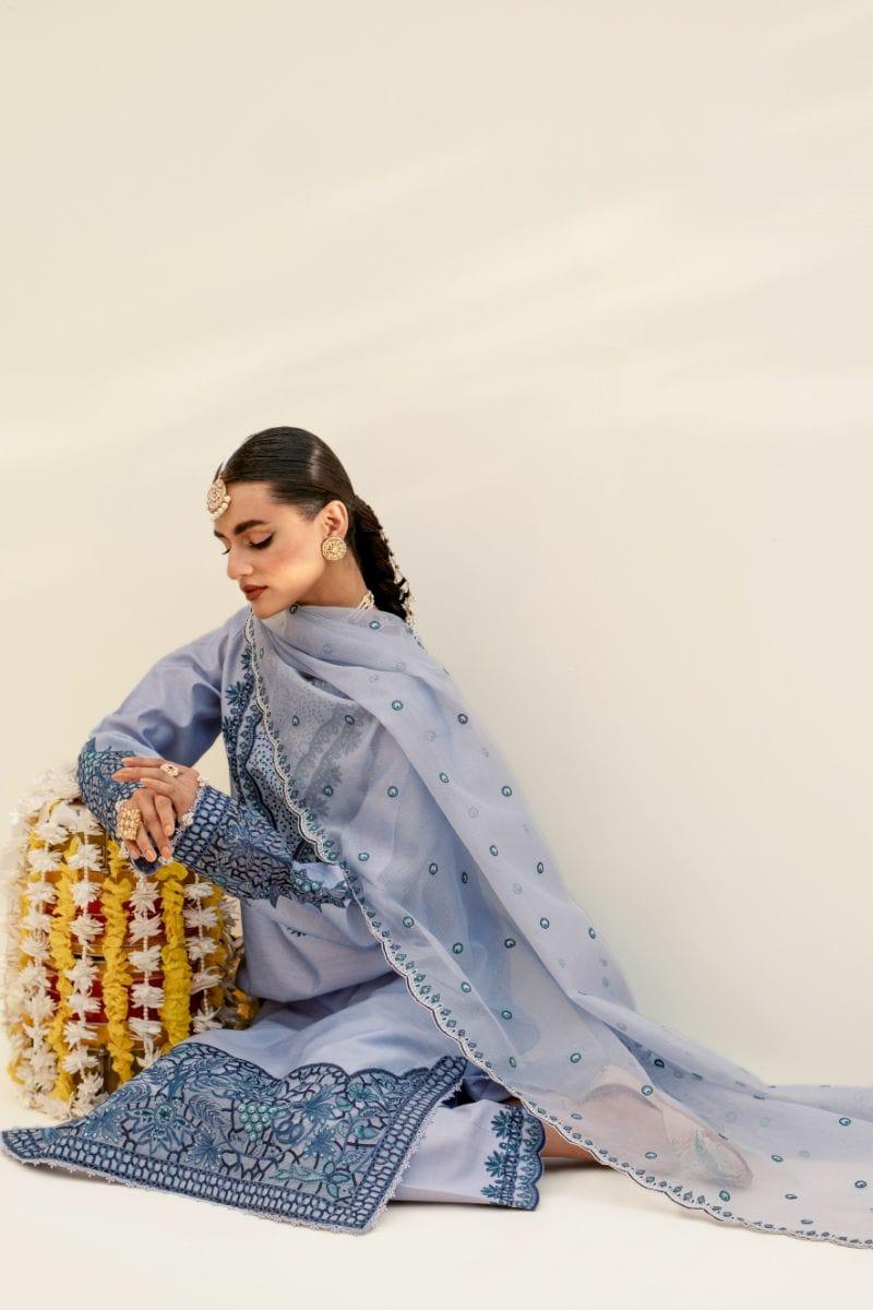 Fozia Khalid - Heather Blue - Embroidered - 3 Piece