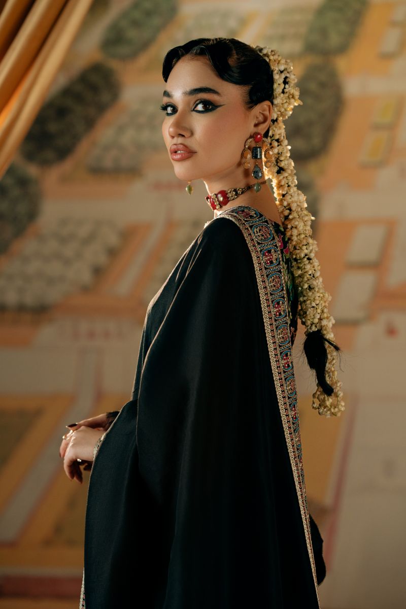 Fozia Khalid - Sangeet - PK Silk & Organza - Black - 3 Piece