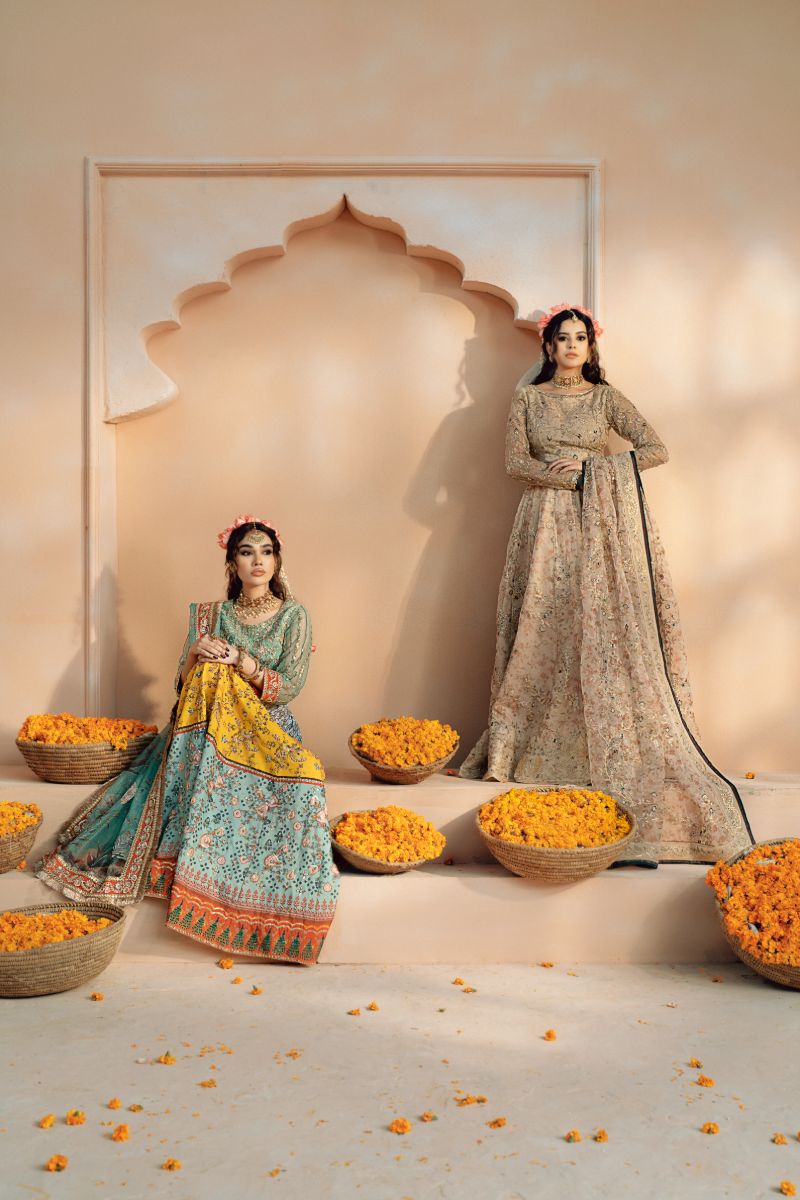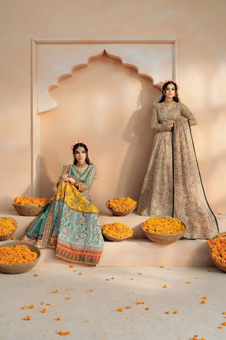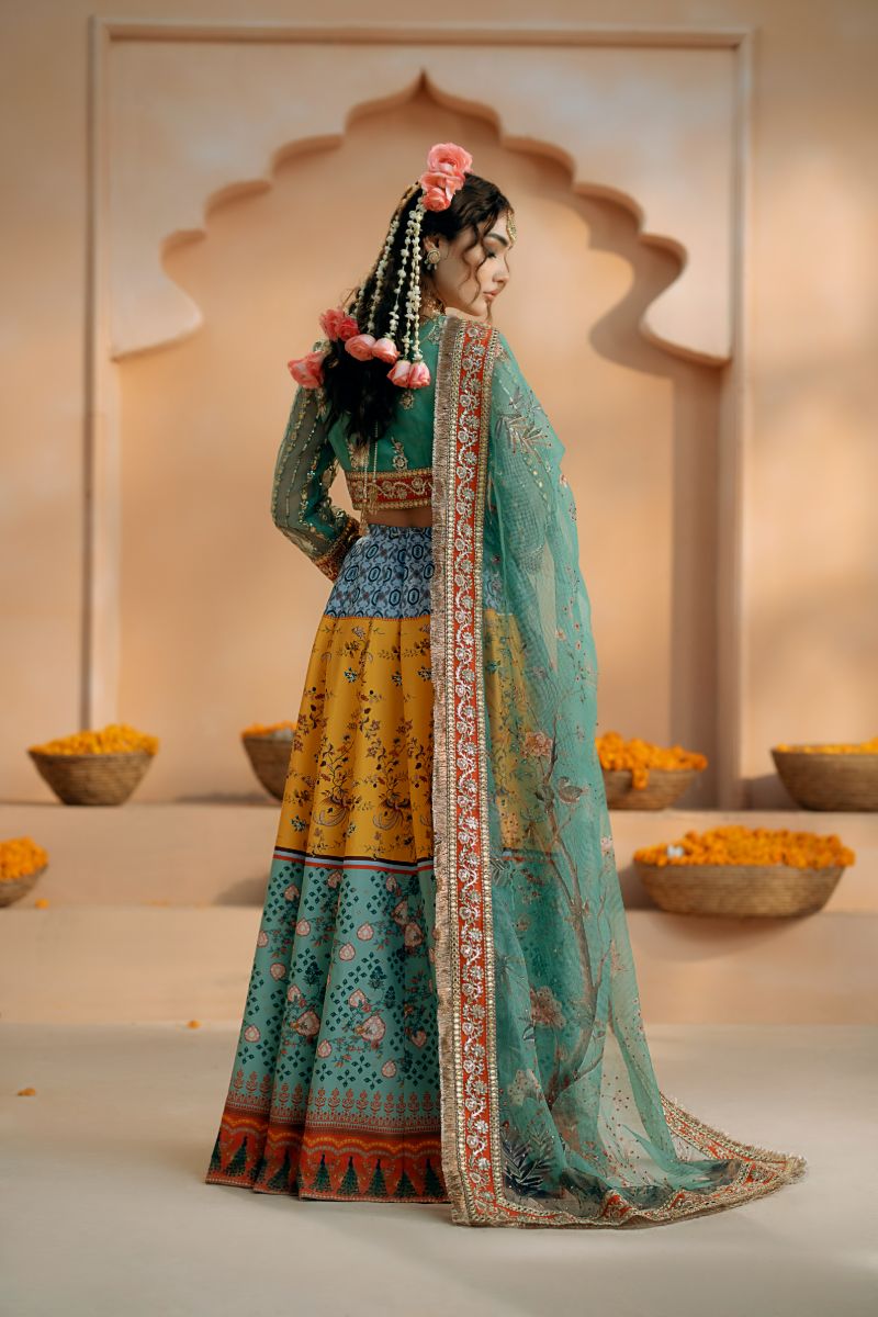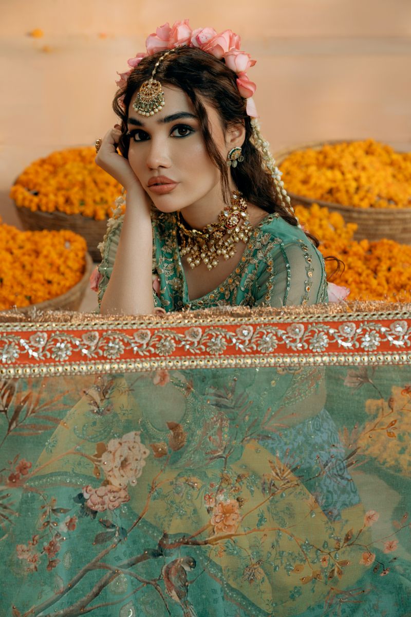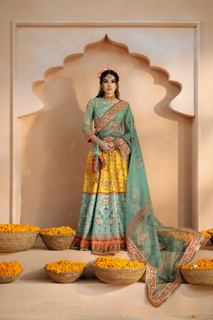Fozia Khalid - Shagun - Organza - Sea Green, yellow & orange - 4 Piece