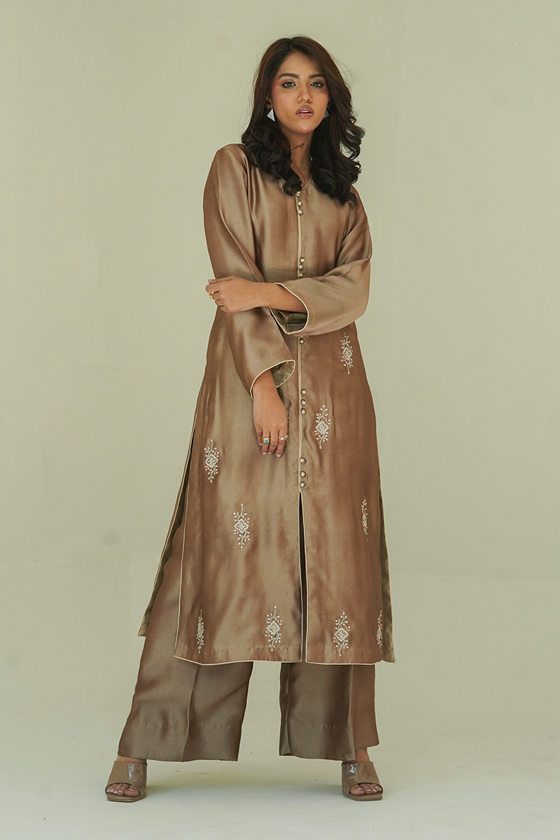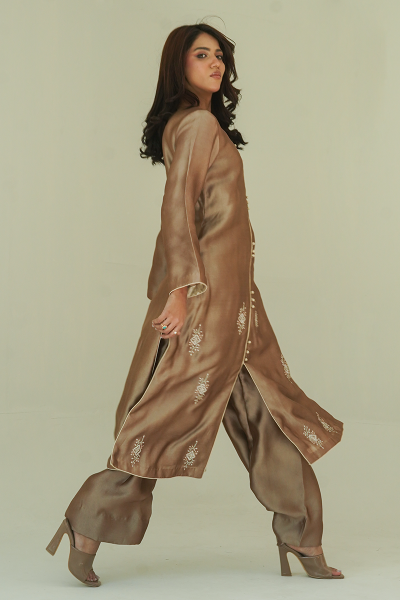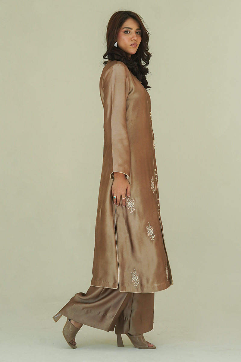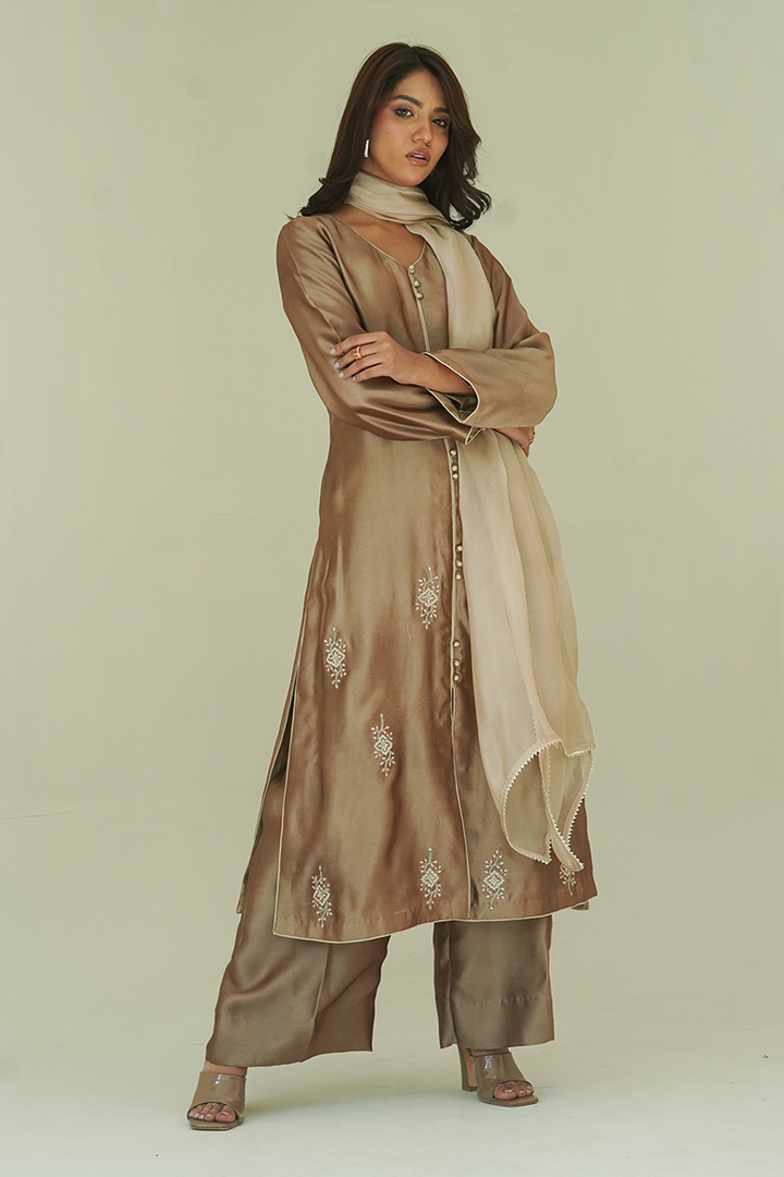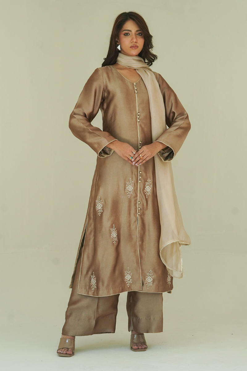 Gul E Noor - Mahi - Brown - Pure Sheesha Silk - 3 Piece