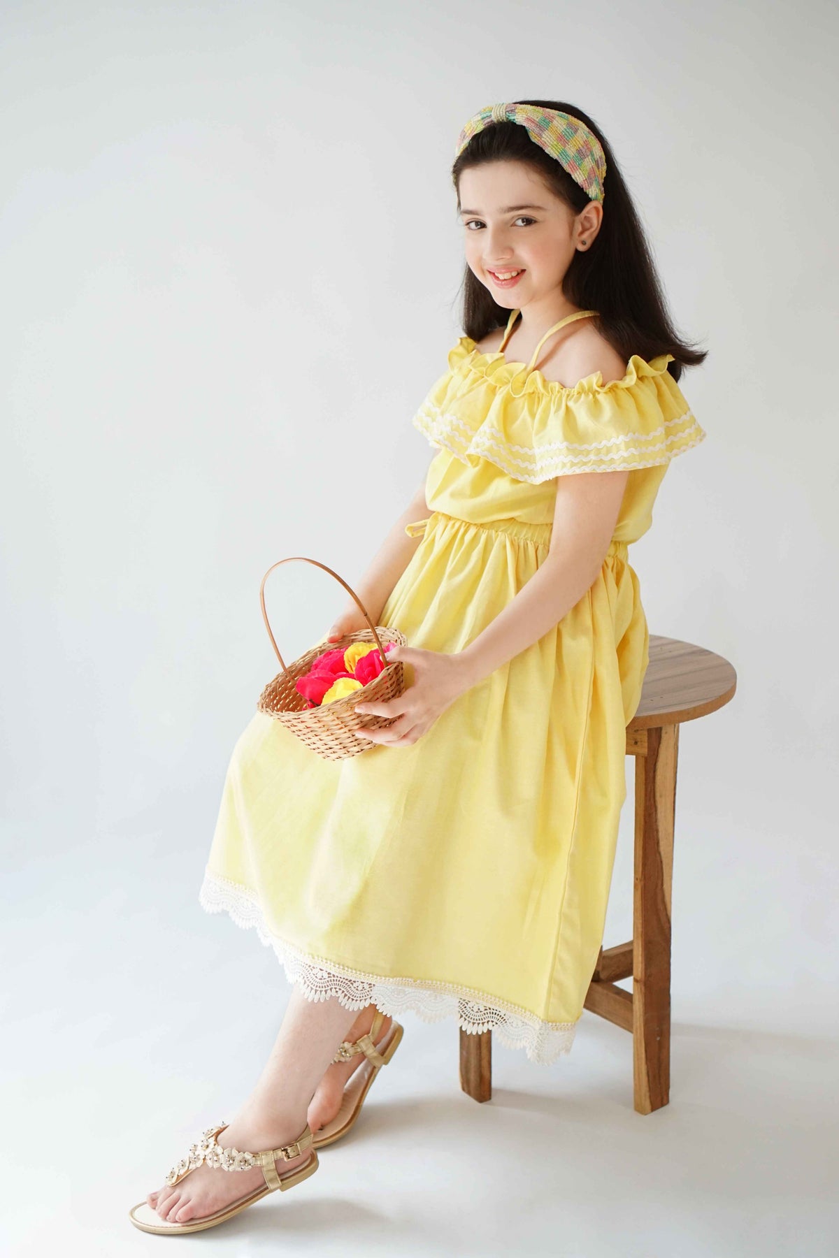 This stunning dress is sure to make a wondrous addition to your youngster’s repertoire while reflecting her sunny disposition.