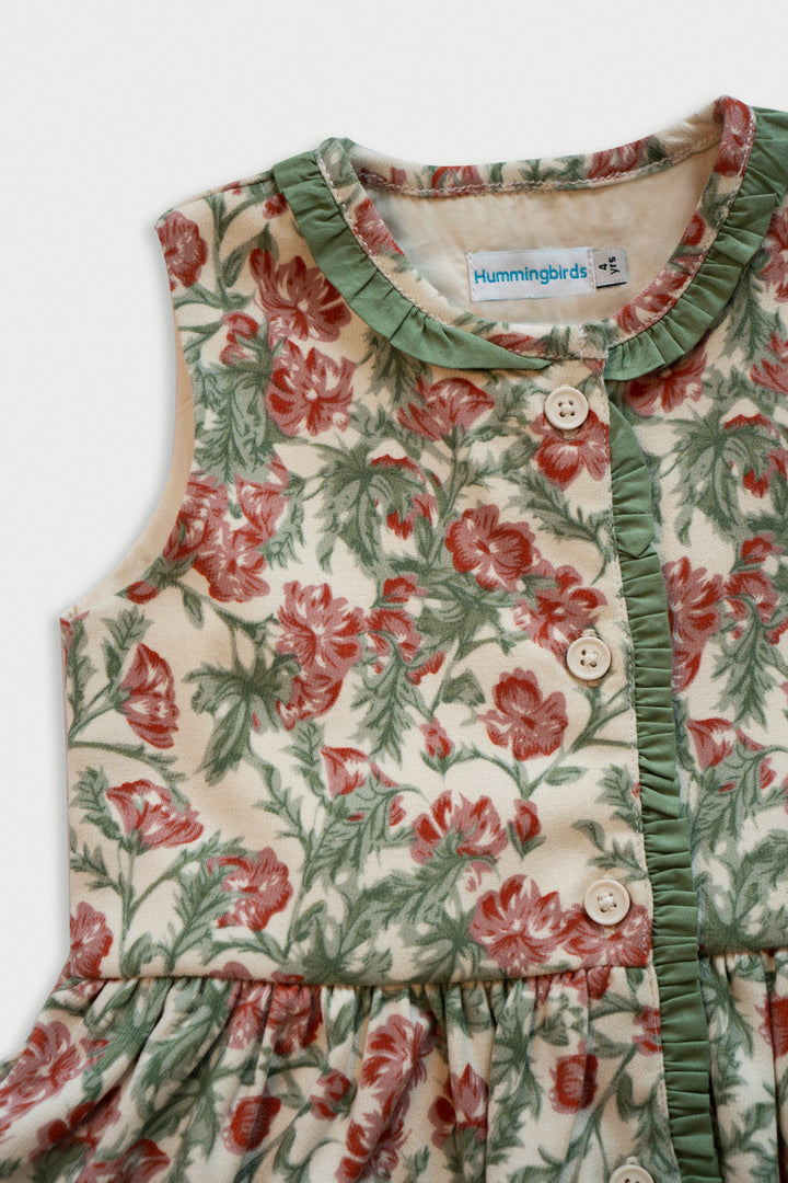 Hummingbirdspk - Thumbelina's Floral Print Corduroy Dress - 1 Piece