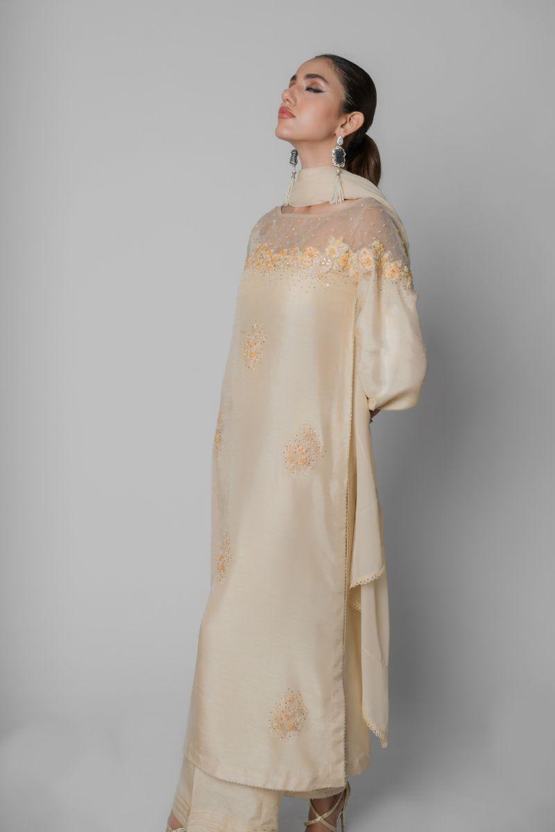 Insia Sohail - Daisy Dawn - Beige - Korean Silk