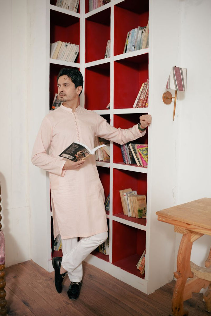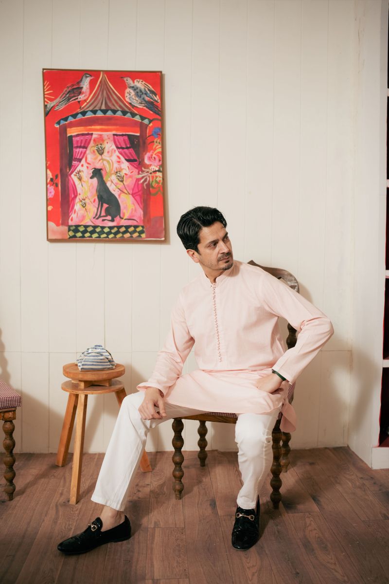 Ella Pink features a breezy lawn crochet shirt with delicate cutwork, button accents, and puffy sleeves. Paired with a perfectly crafted breezy cotton farshi shalwar, it’s perfect for a soft, modern day feminine look.