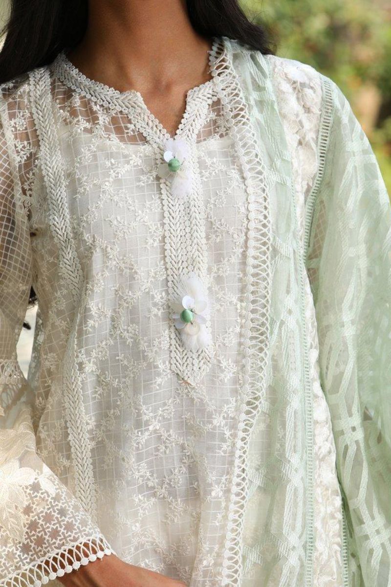 Maheen Trends - Kyanite - White & Mint Green - 3 Piece - Organza