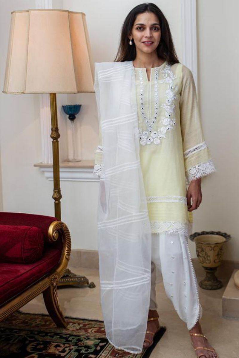 Maheen Trends - Lime Yellow - 2 Piece - Organza