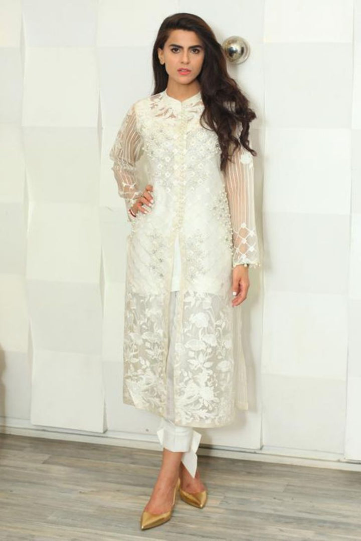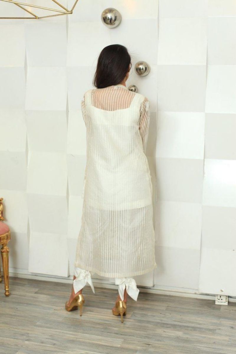 Color: White Includes: Shirt, Pants Shirt: Organza with Inner Pants: Raw Silk Organza jacket with rawsilk pants and inner shirt