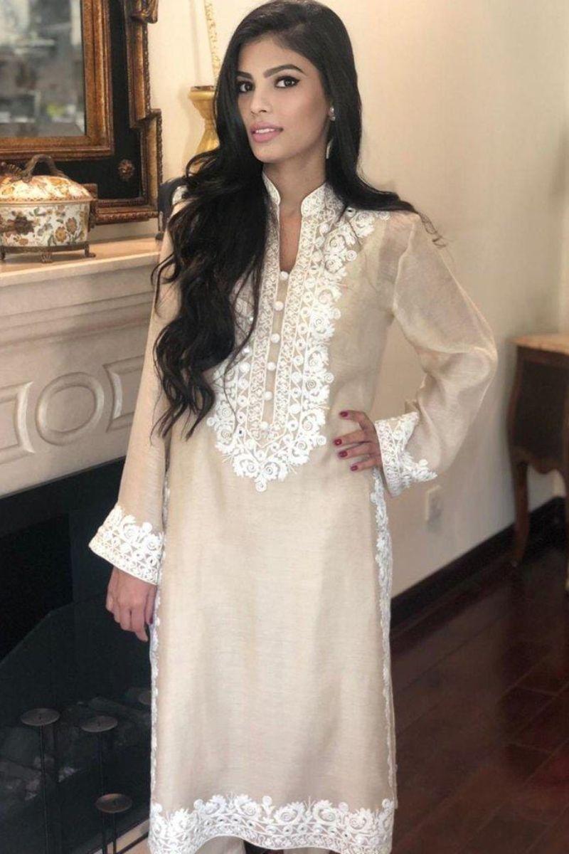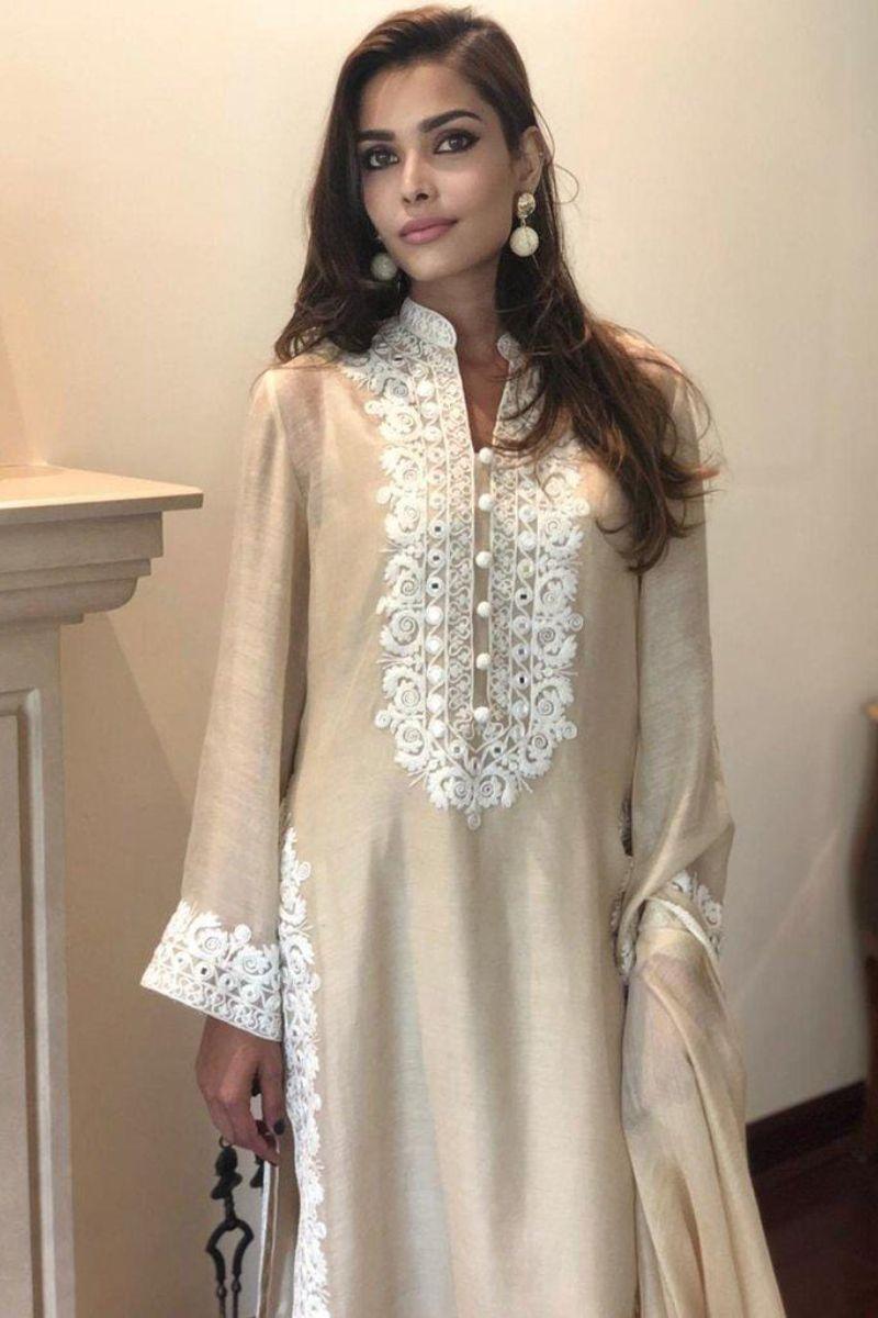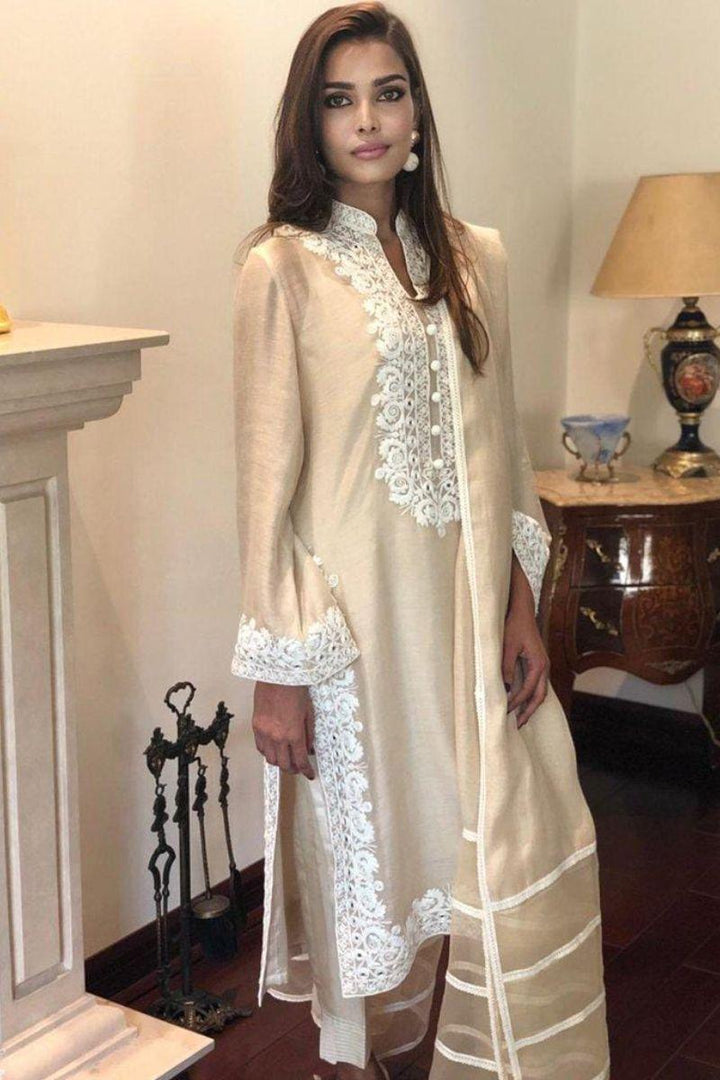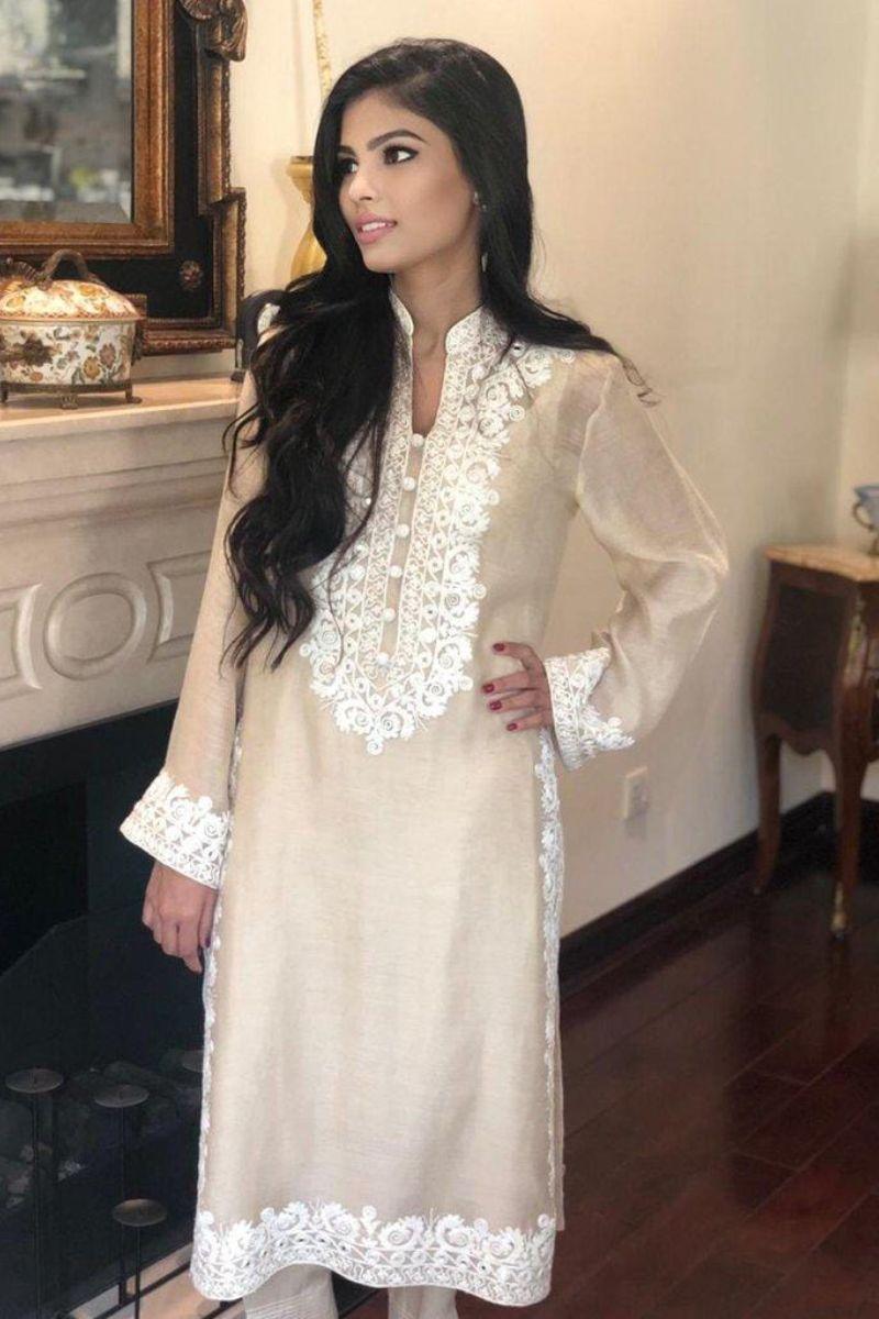 Description: ?Shirt has embroidery and organza applique and sleeves and dupatta has embroidered border.
