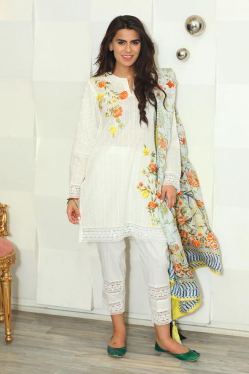 Color: White Includes: Shirt, Pants Shirt: Cotton Chicken Pants: Cotton Lawn Shirt cotton chikn and pants cotton lawn Dupatta Not Included