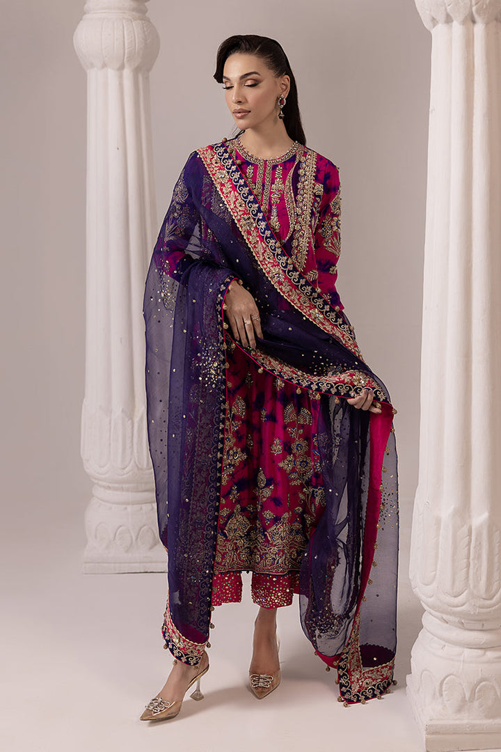 Malook - EMIRI - Tie and Dye, Deep Pink & Plum - Pure Grip Silk & Pure Organza - 3 Piece - UnStitch