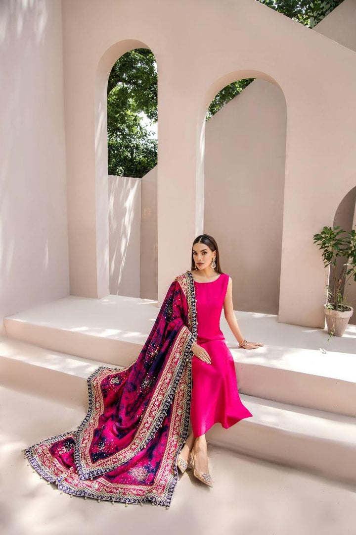 Malook - Inayat - Silk - Shocking pink - 3 Piece
