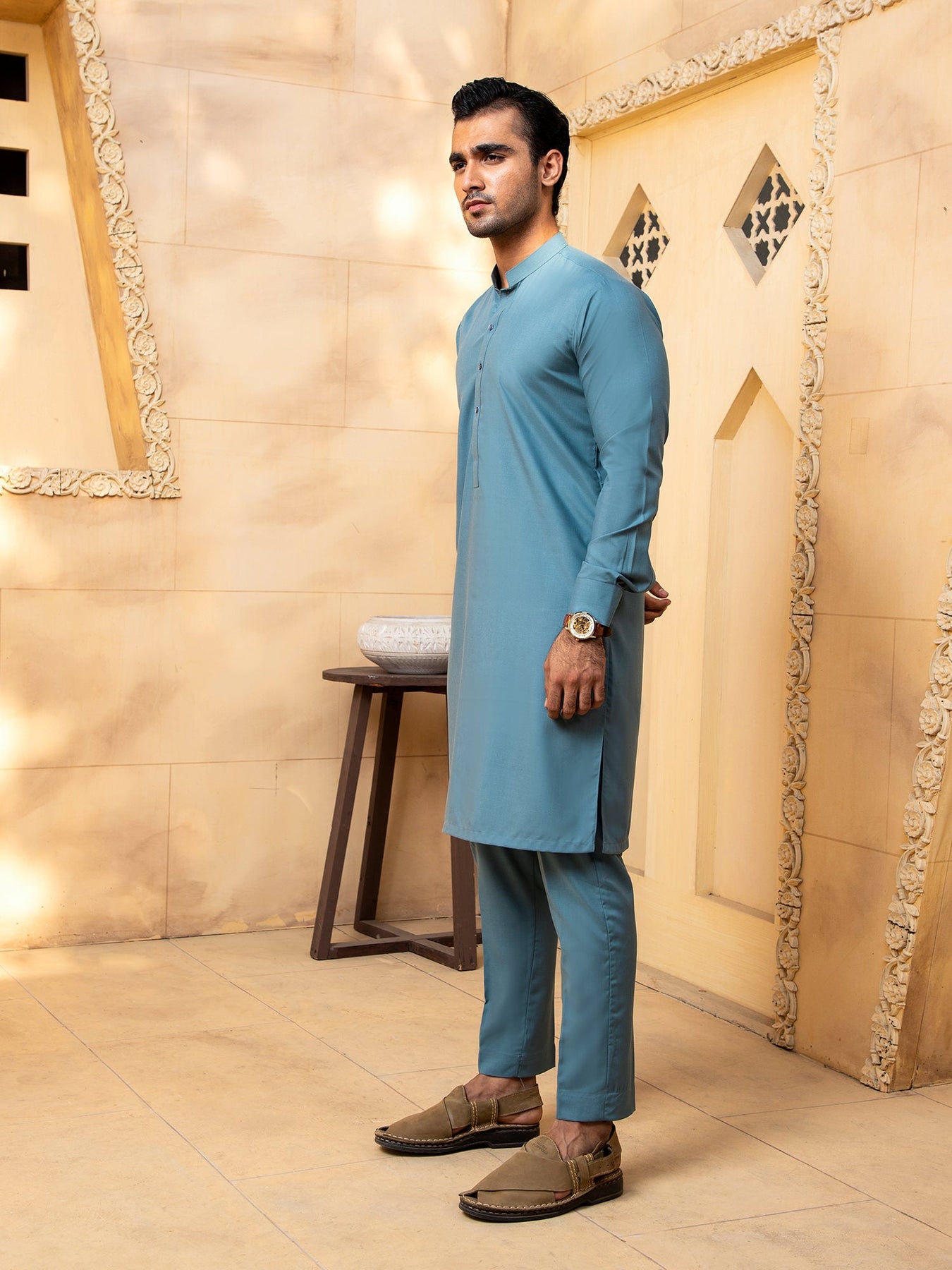 Shahjahan - Pacific Blue Kurta Trouser - 2 Piece