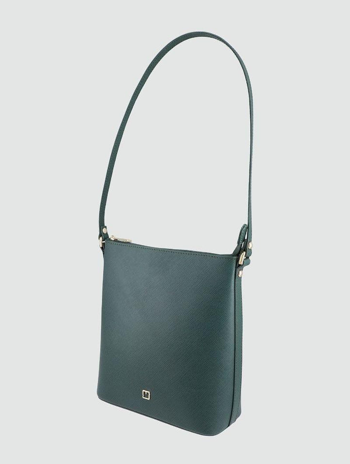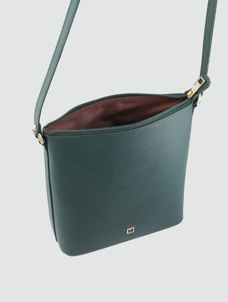 Top zip closure, single shoulder strap, one interior open pocket, exterior back zip pocket. 210mm x 90mm x 232mm.