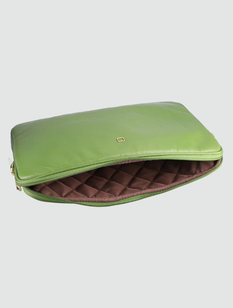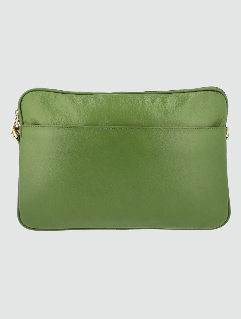 Top zip closure, cross stitch padded inside laptop compartment, exterior back velcro pocket, detachable shoulder strap. 350mm x 38mm x 235mm.
