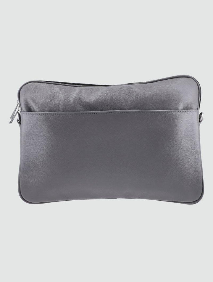 Top zip closure, cross stitch padded inside laptop compartment, exterior back velcro pocket, detachable shoulder strap. 350mm x 38mm x 235mm.
