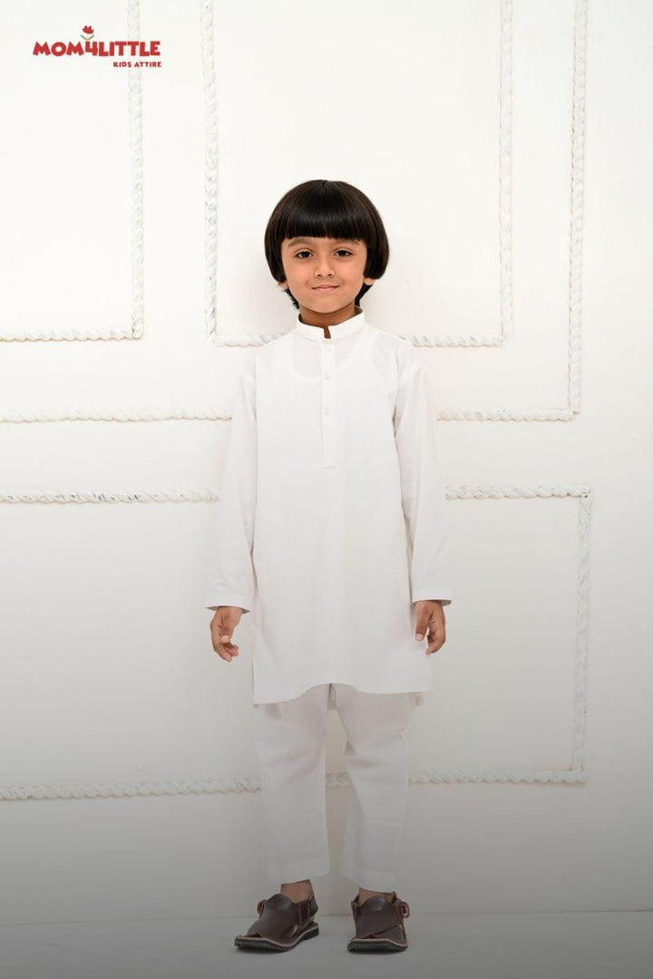 This cool offwhite kurta and pajama is created with cotton fabric with decent buttons. Its a wonderful addition to our ethinic Eid and Ramadan collection! Looks perfect on your child
