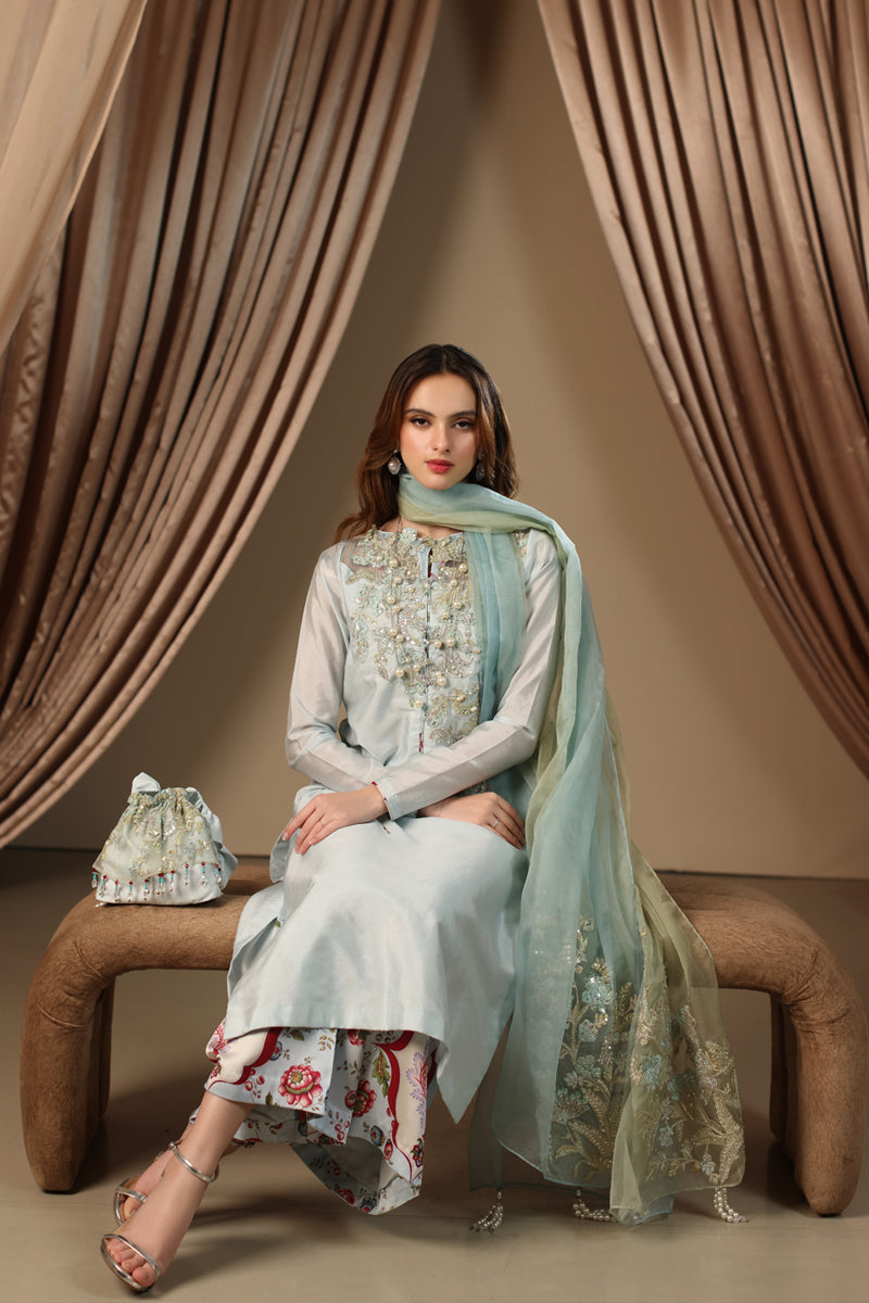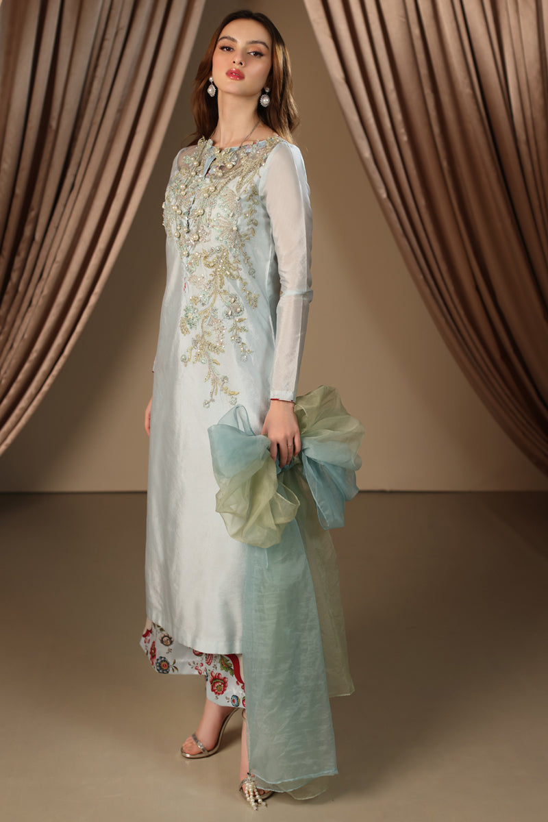 Musferah Saad - Ariana - Ice Blue - Tissue Silk & Organza - 3 Piece