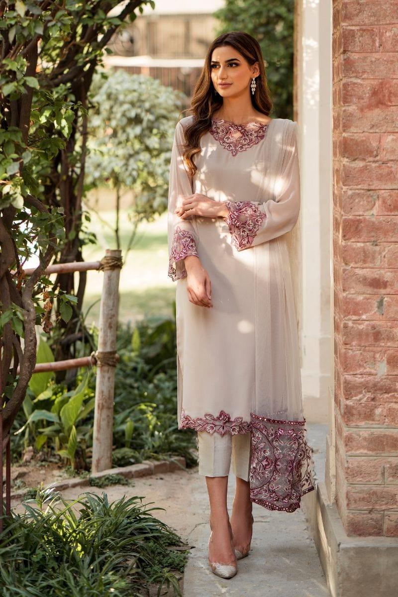 Parfait nude embroidered shirt and embroidered duppatta (three piece set)