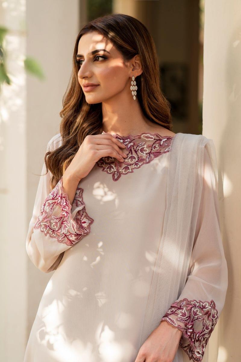 Natasha Kamal - Parfait Nude Embroidered Shirt and Pants with Net Dupatta - 3 Pieces