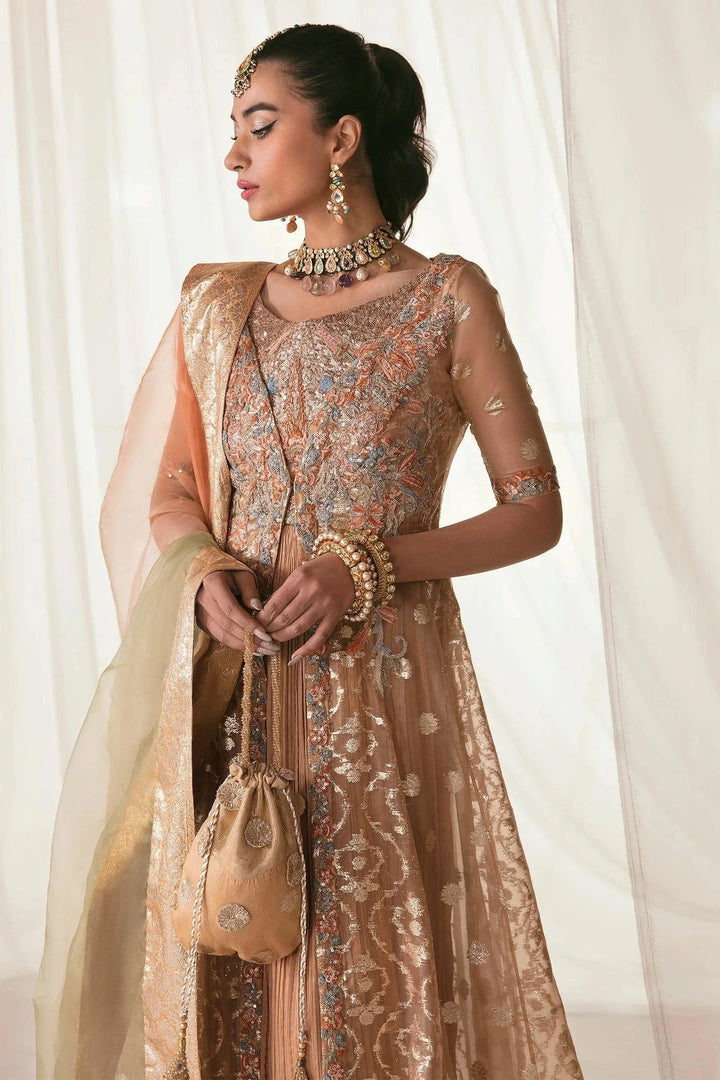 An inimitable NS ensemble "Musical Spell" is inspired by the Asian fortune of sartorialism. This Ensemble stands out as an embodiment of luxury & class, crafted with pure finesse, a one-of-a-kind dupatta & elegant embroideries, Portraying the classic NS design philosophy!
